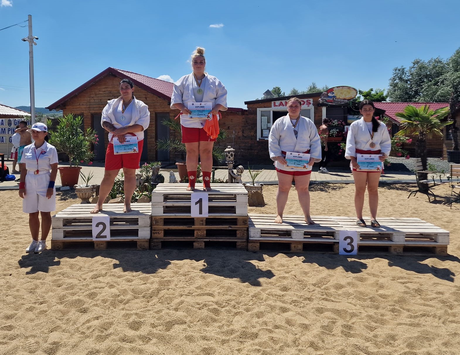 GHIOROC. Familia Carol şi Cristina Szabo, susţinută de CS Universitatea Arad, Primăria Ghioroc şi câţiva oameni generoşi, cu dragoste faţă de sport, a fost, din nou, la înălţimea unui eveniment de talie naţională. Vorbim despre Campionatul Naţional de sambo pe plajă rezervat seniorilor, întrecere găduită de plaja din Ghioroc şi care a contat drept criteriu de calificare la Campionatul Mondial din Republica Dominicană. Acolo unde vor reprezenta tricolorul campionii fiecărei categorii. Printre ei se va afla şi Bianca Prodan care şi-a învins toţi adversarii în cadrul categoriei +78 Kg, obţinând medalia de aur.