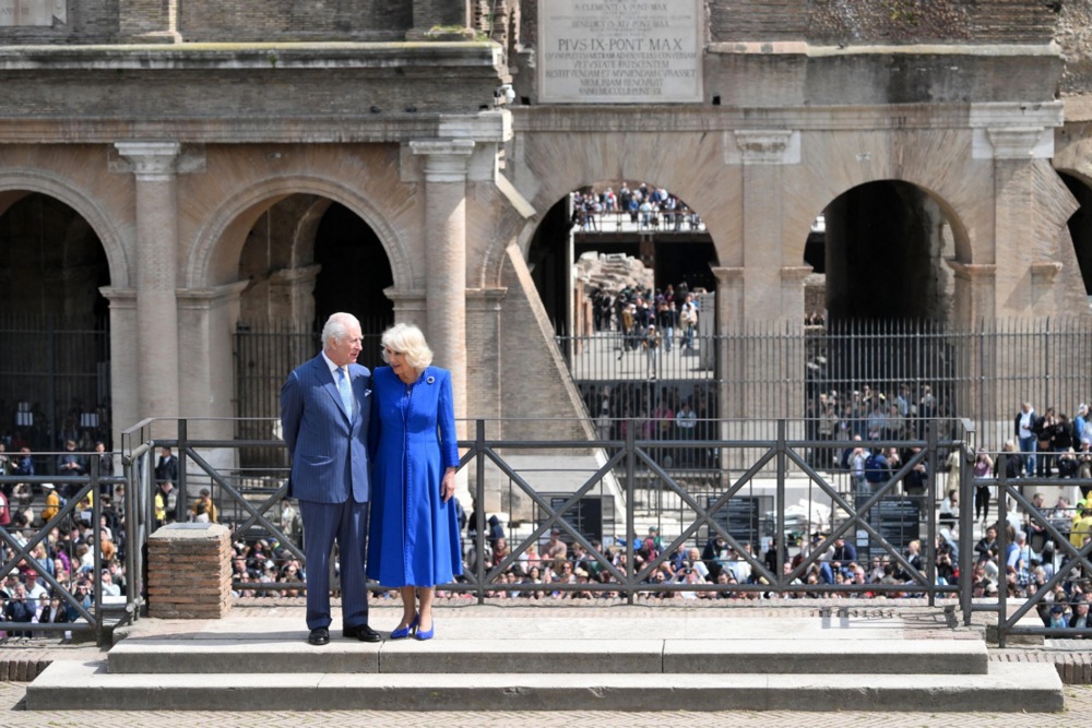 Marți după-amiază, regele Charles și regina Camilla au pozat pentru fotografi în fața arcadelor maiestuoase ale Colosseumului, legendarul amfiteatru antic din Roma. Cuplul regal britanic a fost aplaudat de mulțimea numeroasă de turiști prezenți în proximitatea celui mai vizitat monument al Italiei, care găzduia în perioada Imperiului Roman faimoasele lupte cu gladiatori.