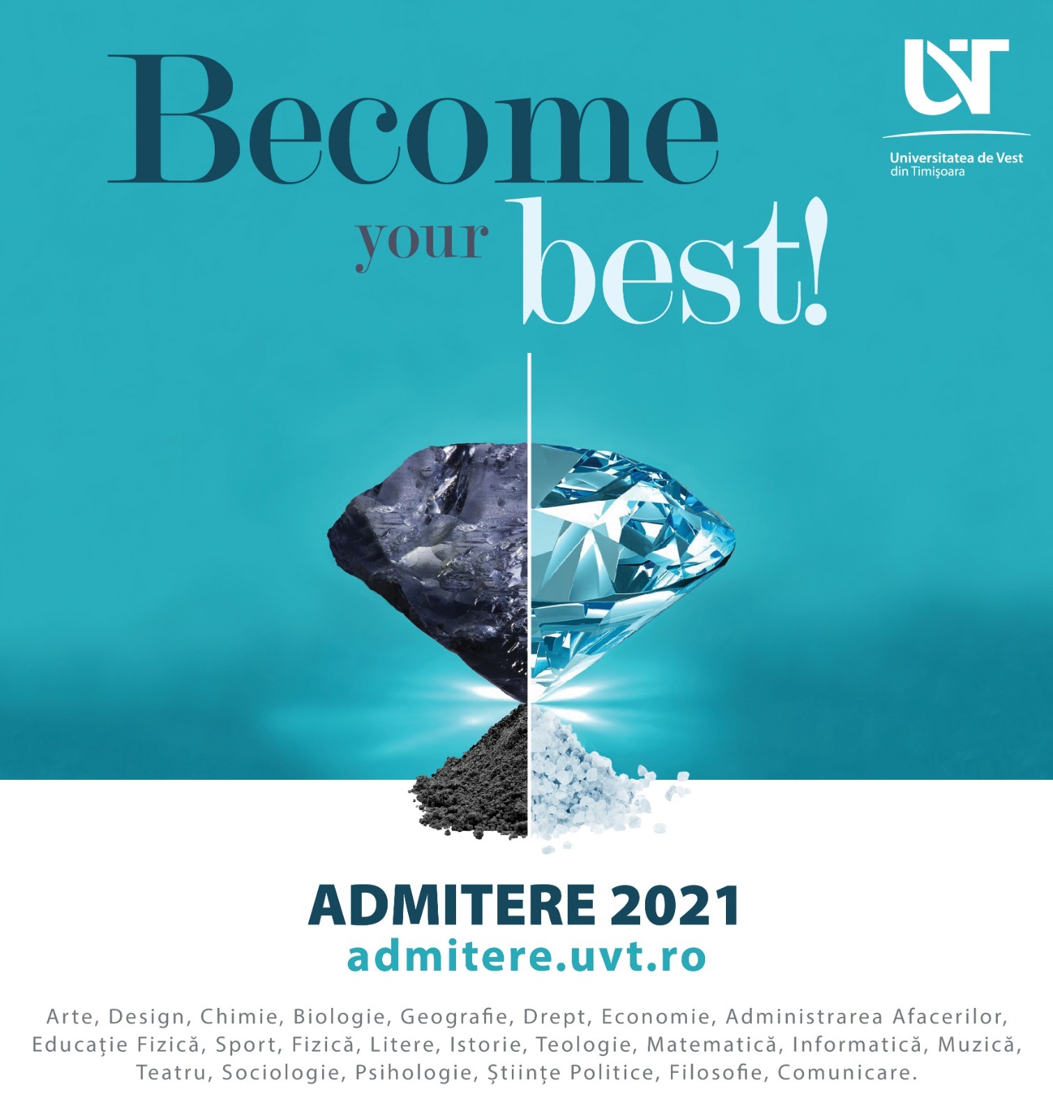 Îndemnul nostru – Become Your Best! – îi cheamă pe viitorii candidați în Timișoara, Capitală Europeană a Culturii în 2023, orașul vestic unde tinerii își definesc cea mai bună versiune a lor, prin viața de student la UVT”.