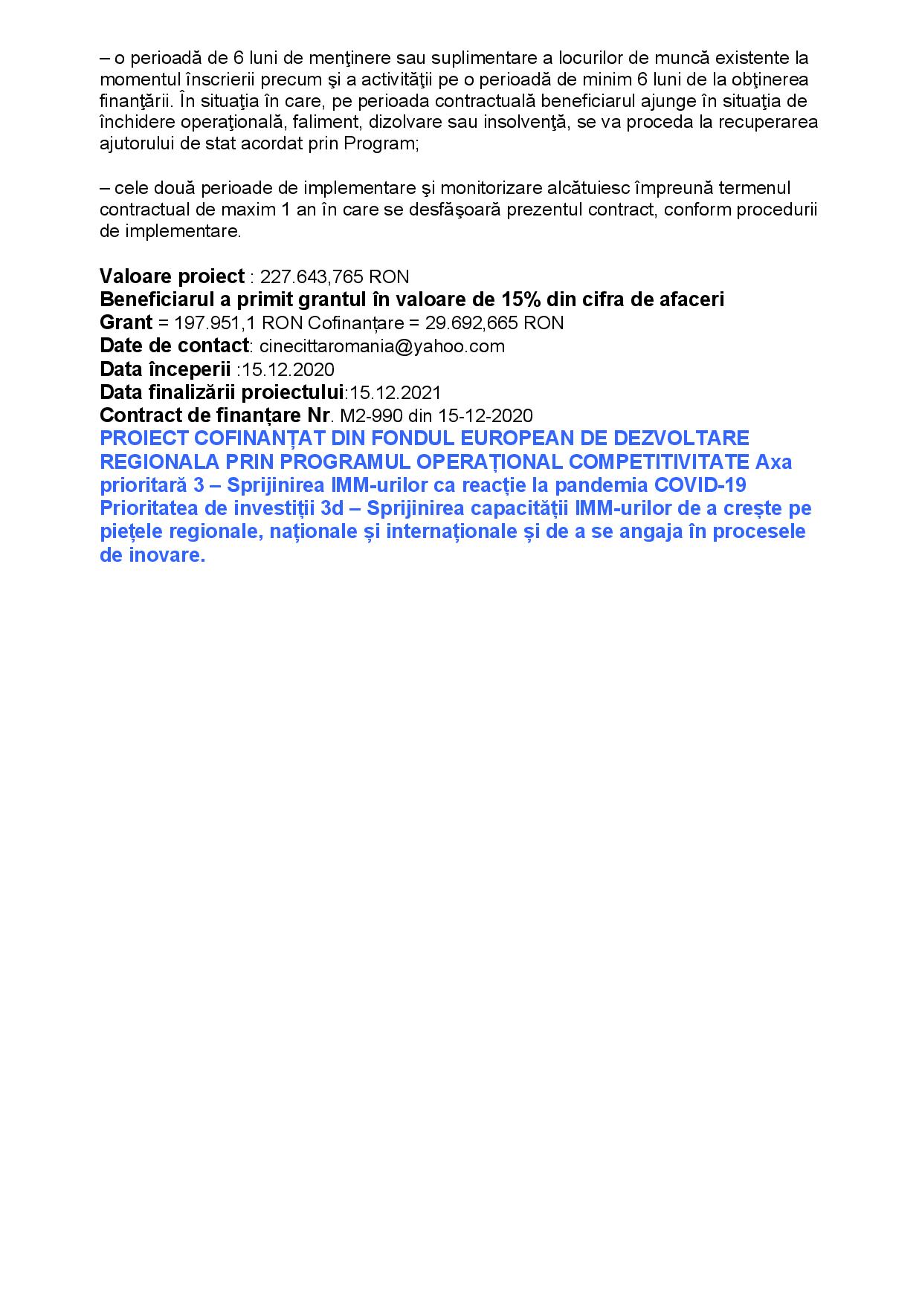 Contract de finanțare Nr. M2-990 din 15-12-2020