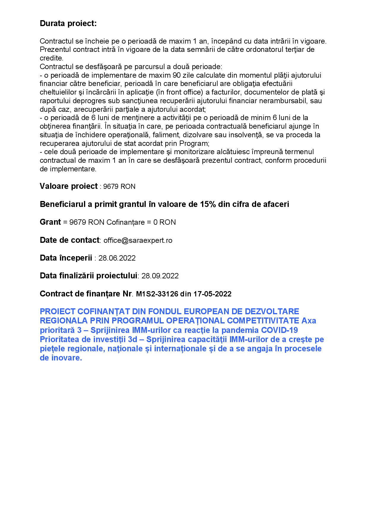Contract de finanțare Nr. M1S2-33126 din 17-05-2022