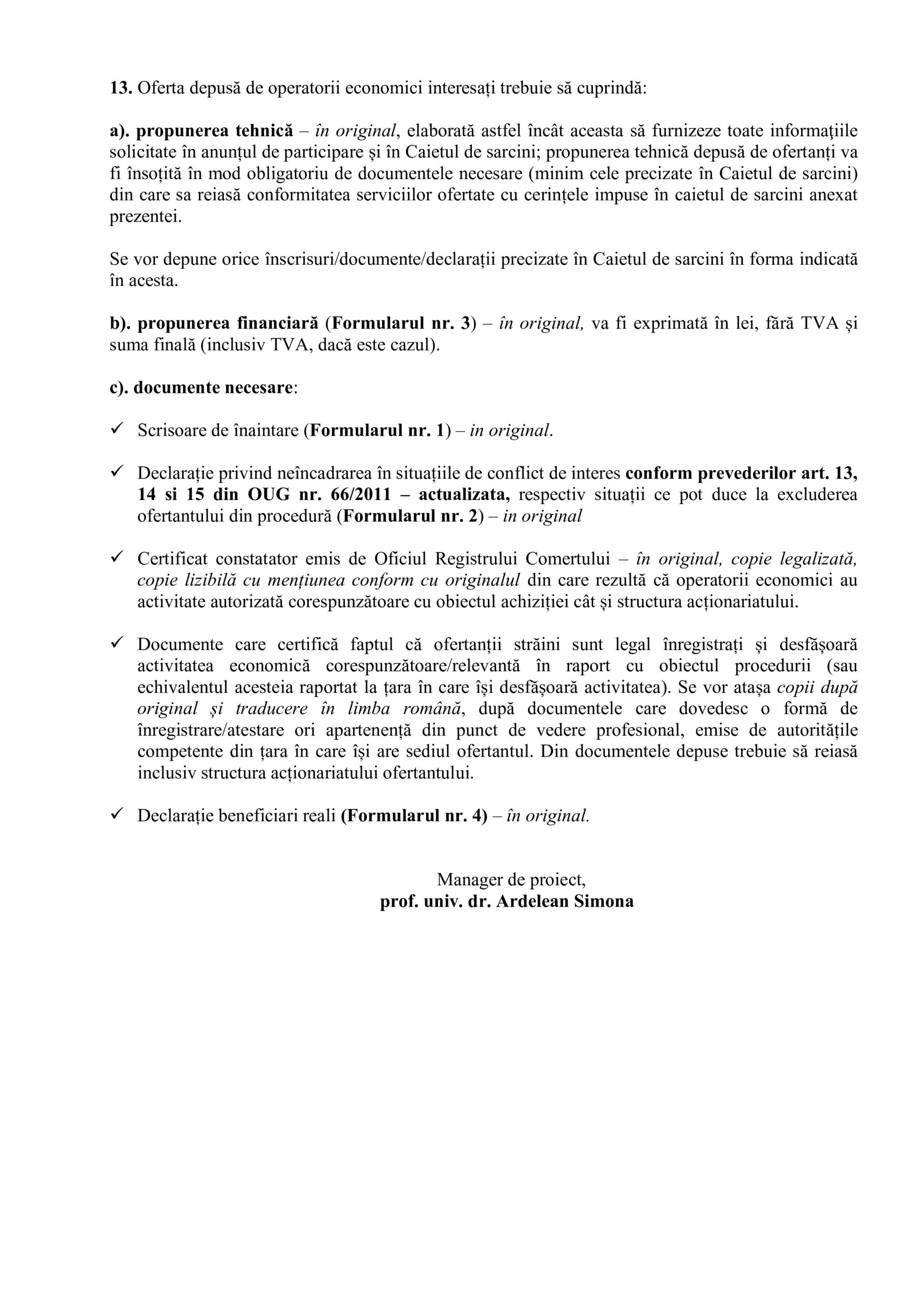 Criteriul de atribuire: oferta cea mai avantajoasă din punct de vedere economic.