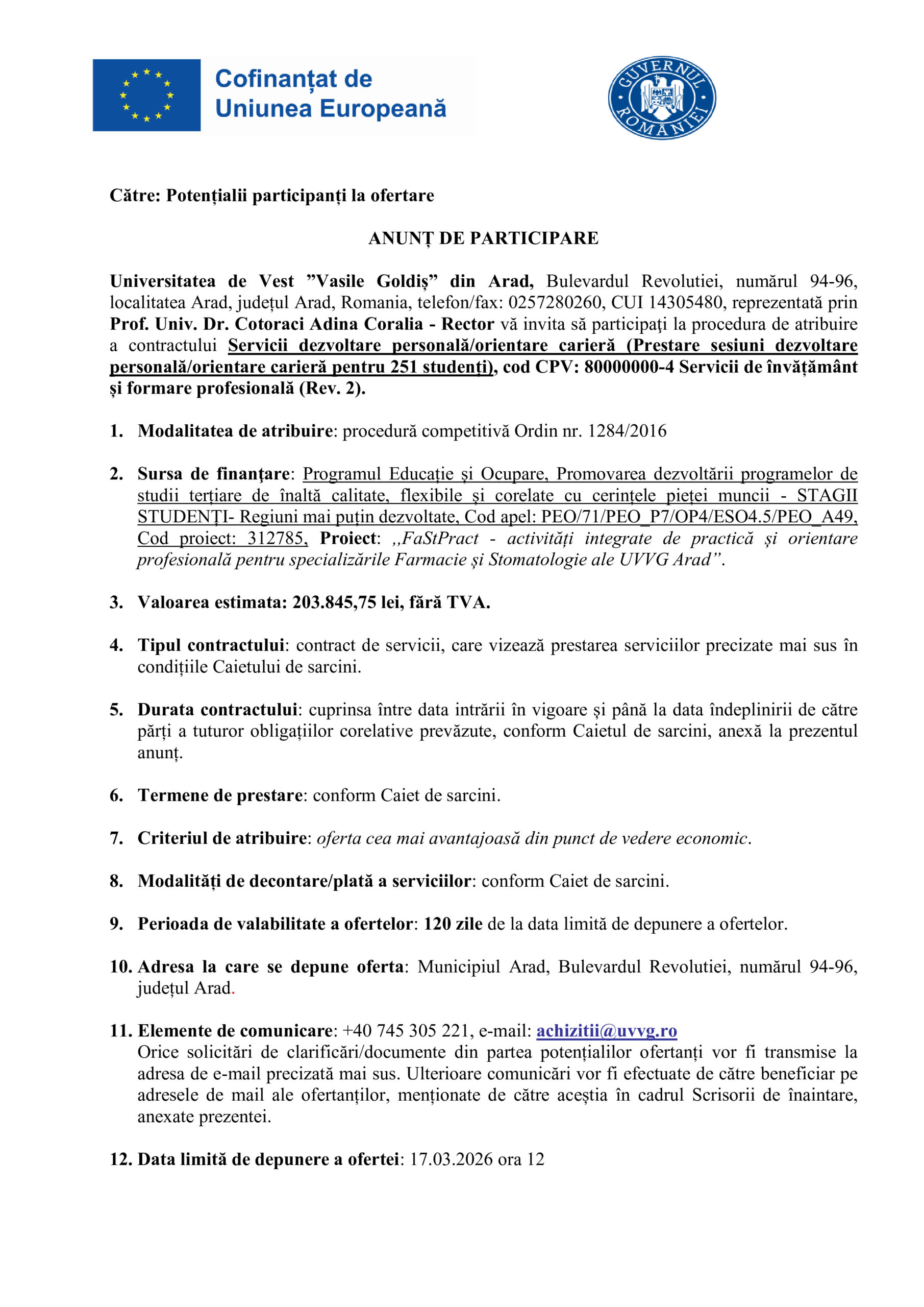 Data limită de depunere a ofertei: 17.03.2026 ora 12