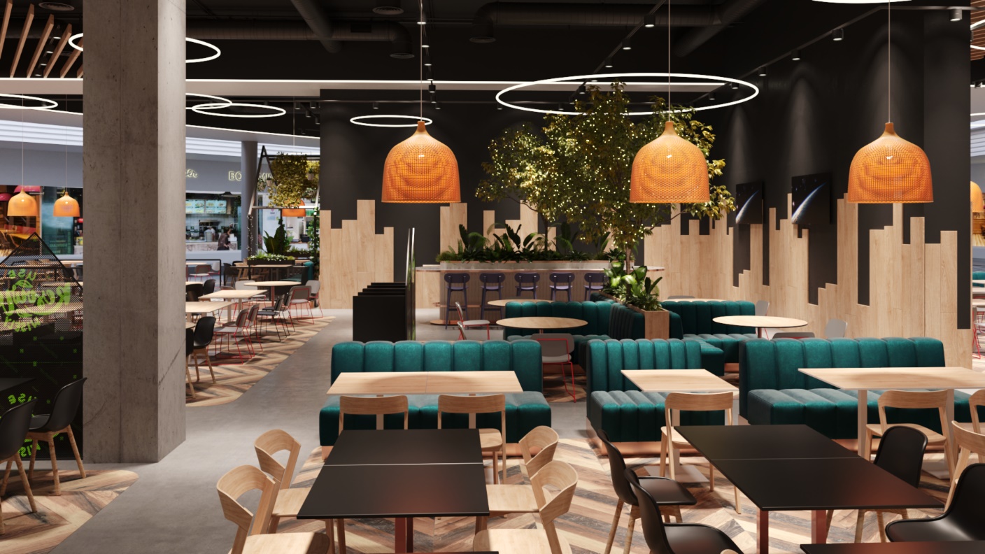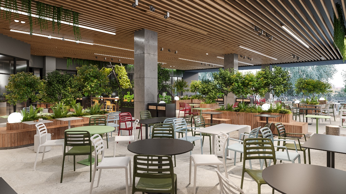 O atracție cheie a mall-ului este terasa în aer liber de la etajul 2, întinsă pe o suprafață de peste 500m², care se va regăsi în zona de foodcourt. Branduri noi, precum 3F și Burger 1, vor completa nevoile clienților, în timp ce restaurante deja existente, Mesopotamia, Fast Food Chinezesc și KFC, se vor alinia noului design interior.
