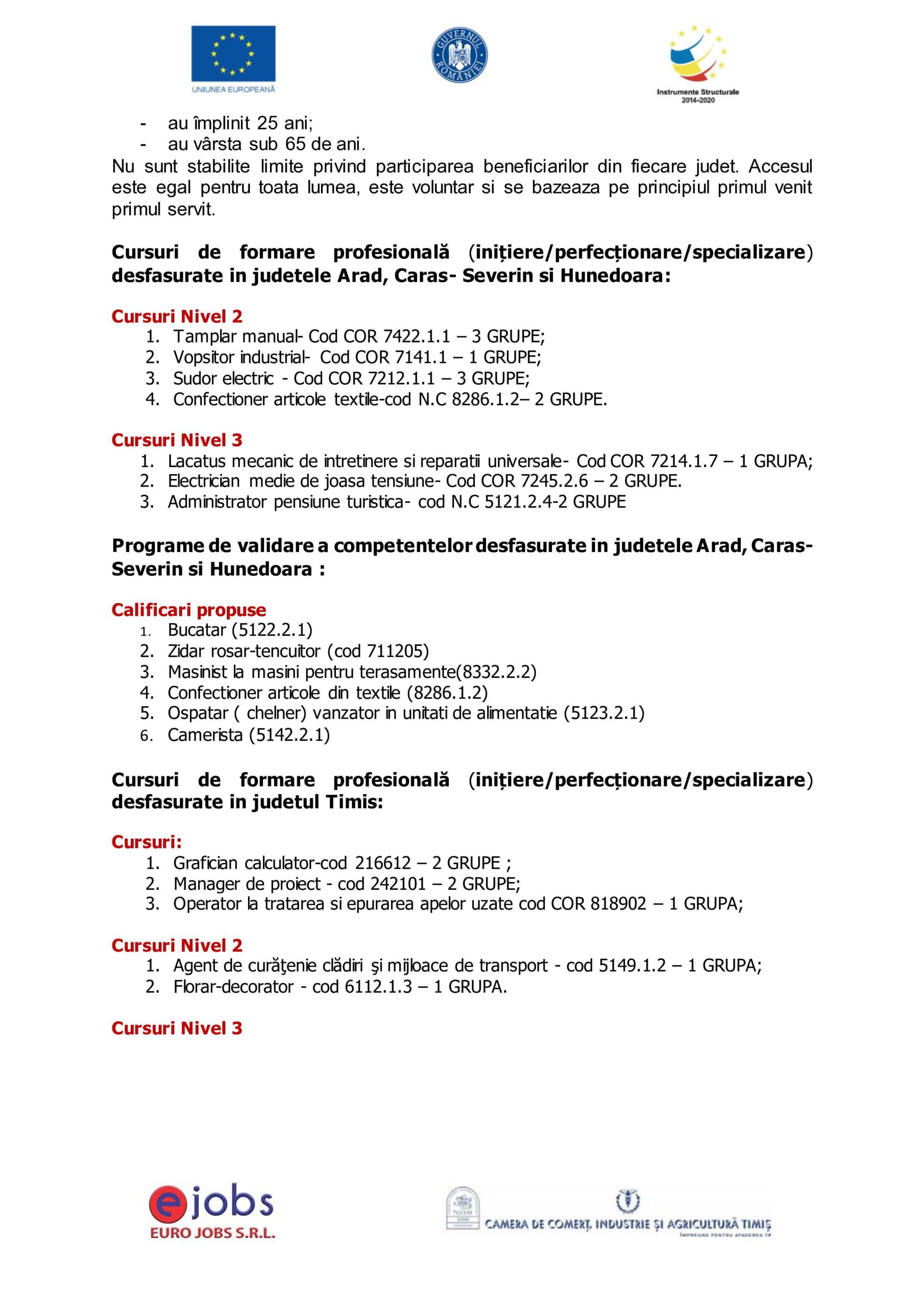 Cursuri de formare profesională (inițiere/perfecționare/specializare) desfasurate in judetele Arad, Caras- Severin si Hunedoara:
