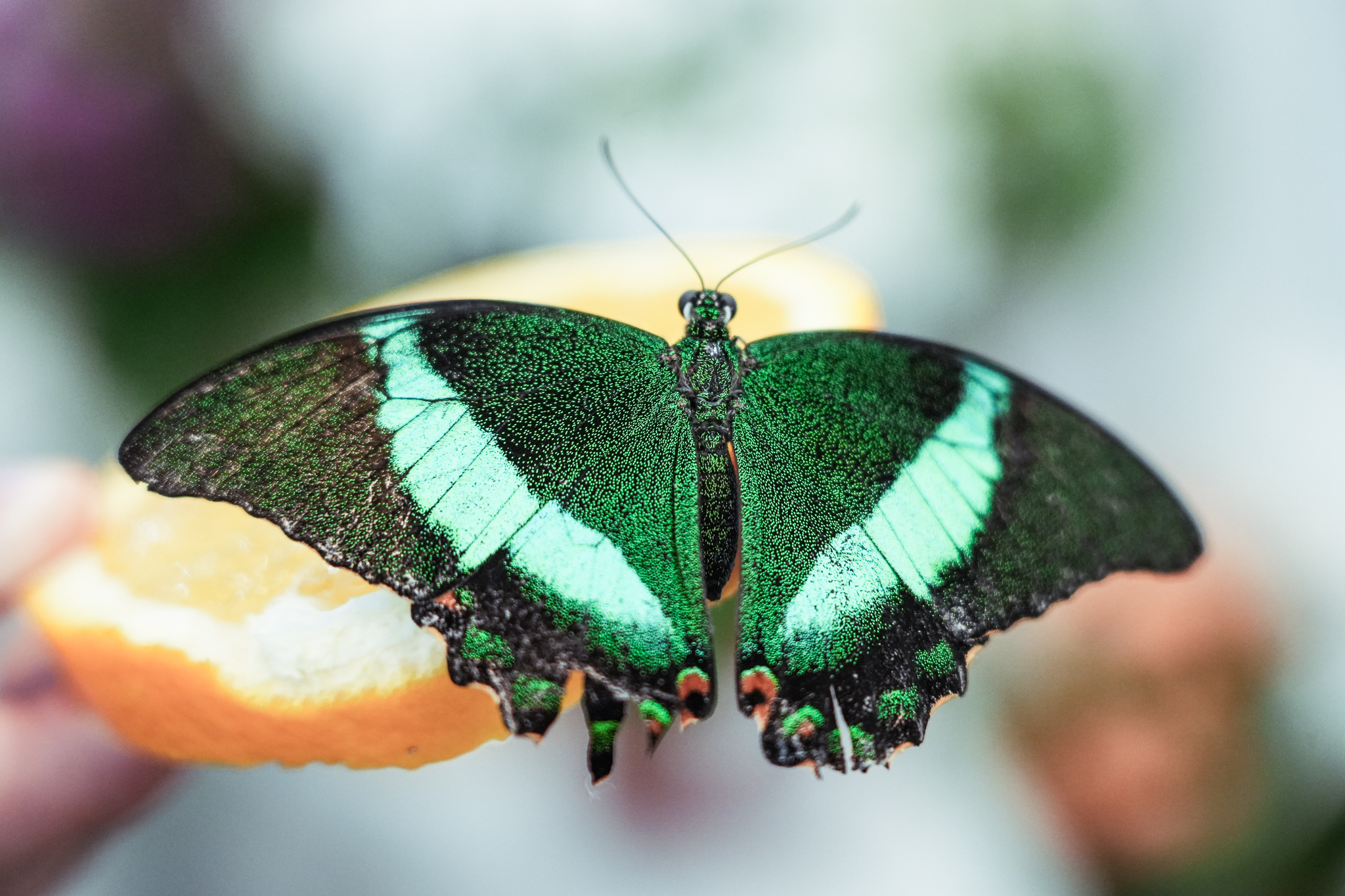 – În seră, vă rugăm să respectați instrucțiunile personalului și să nu atingeți fluturașii, o să îi așeze personalul nostru în mâna dvs, pentru a evita manipularea lor greșită