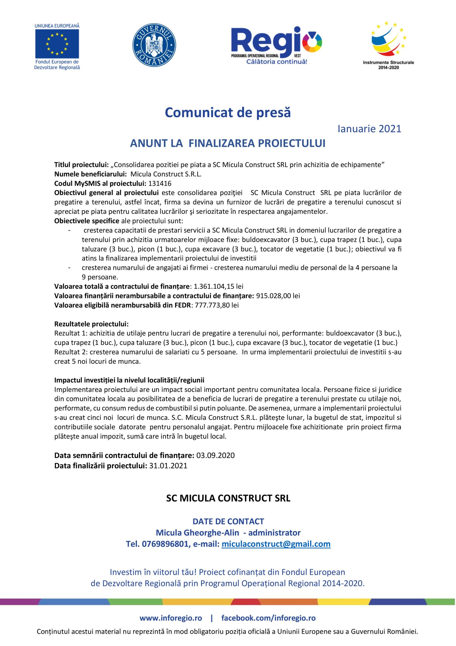 Tel. 0769896801, e-mail: miculaconstruct@gmail.com