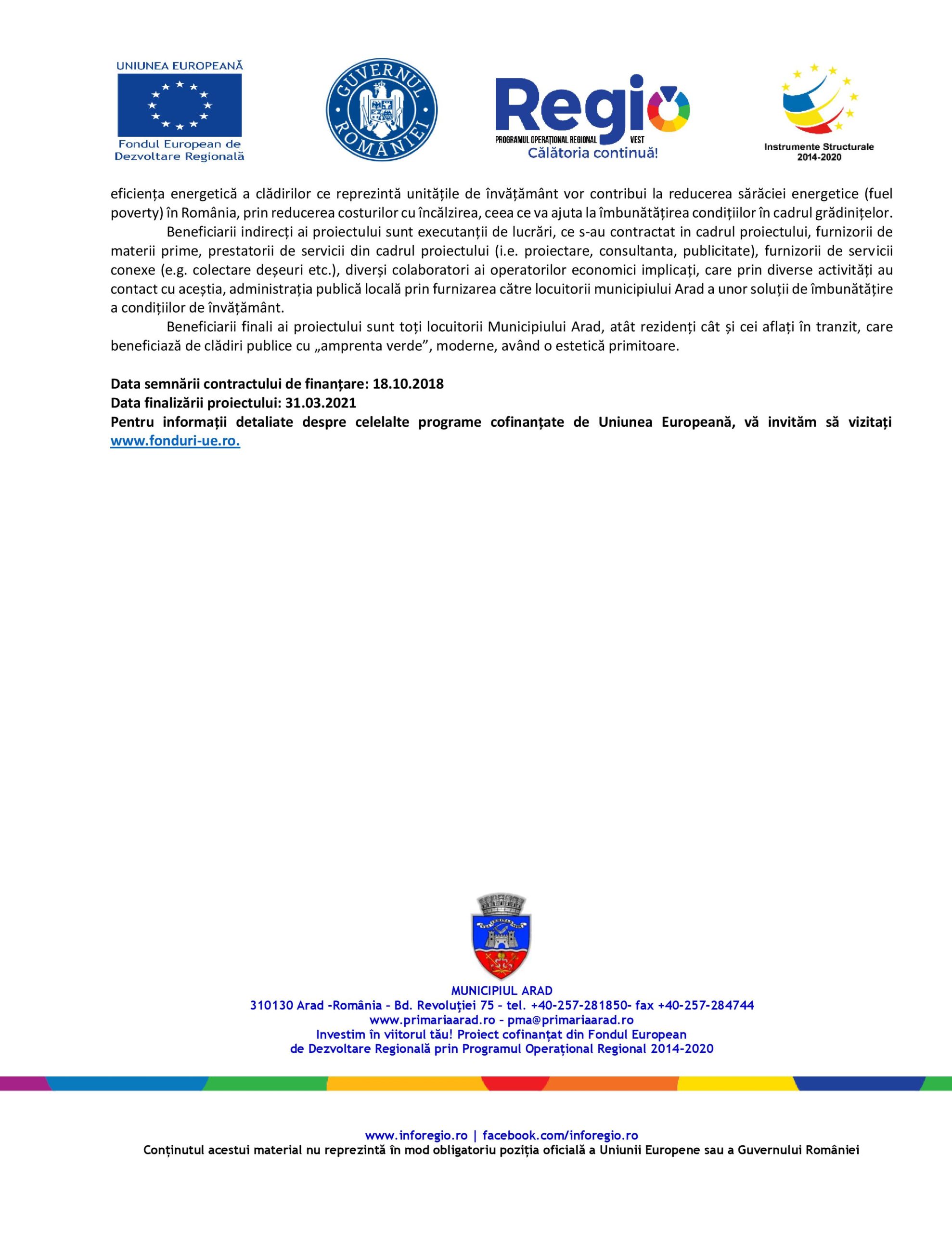 Beneficiar: Unitatea Administrativ Teritorială Municipiul Arad