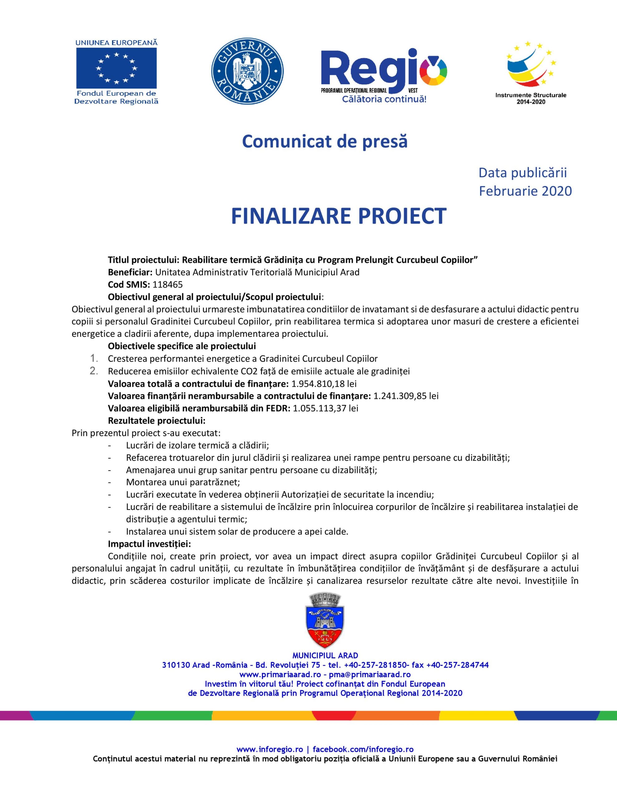 Data finalizării proiectului: 31.03.2021