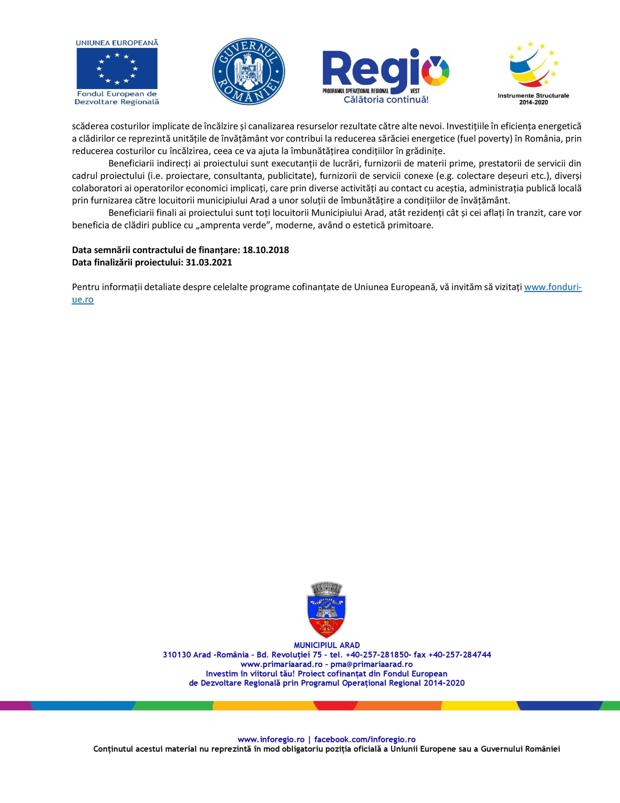 Beneficiar: Unitatea Administrativ Teritorială Municipiul Arad