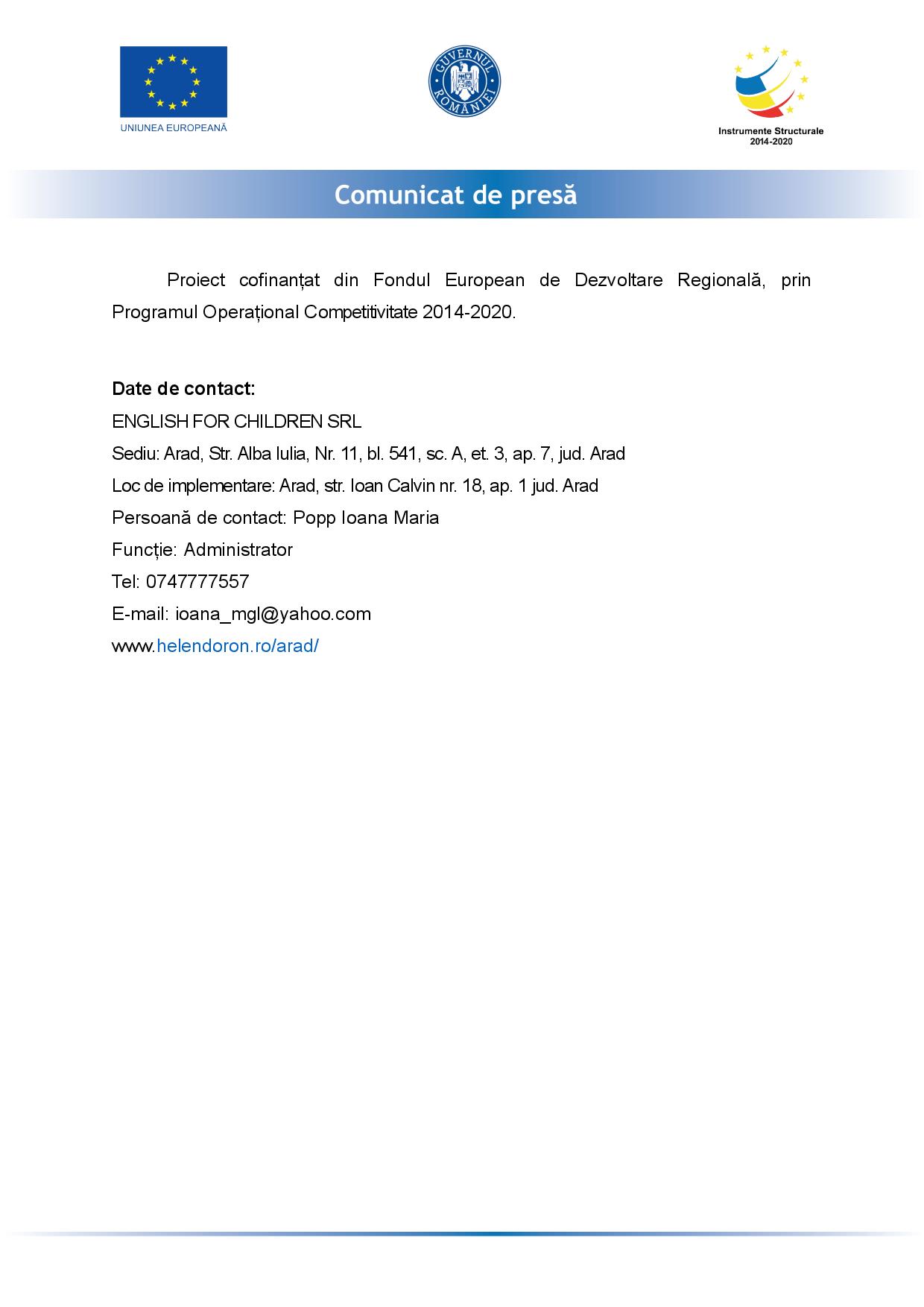 Denumire beneficiar: ENGLISH FOR CHILDREN SRL