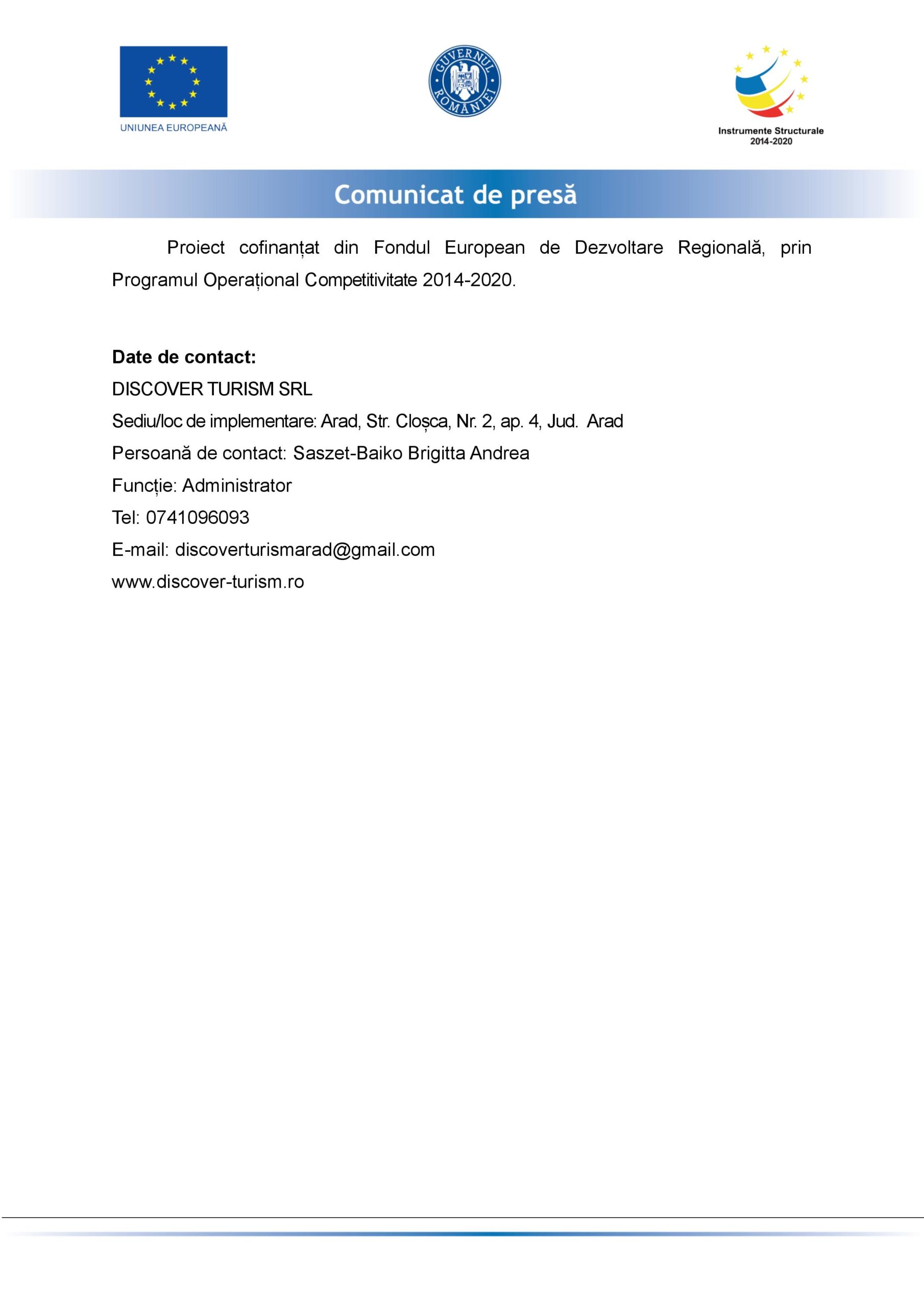 Denumire beneficiar: DISCOVER TURISM SRL