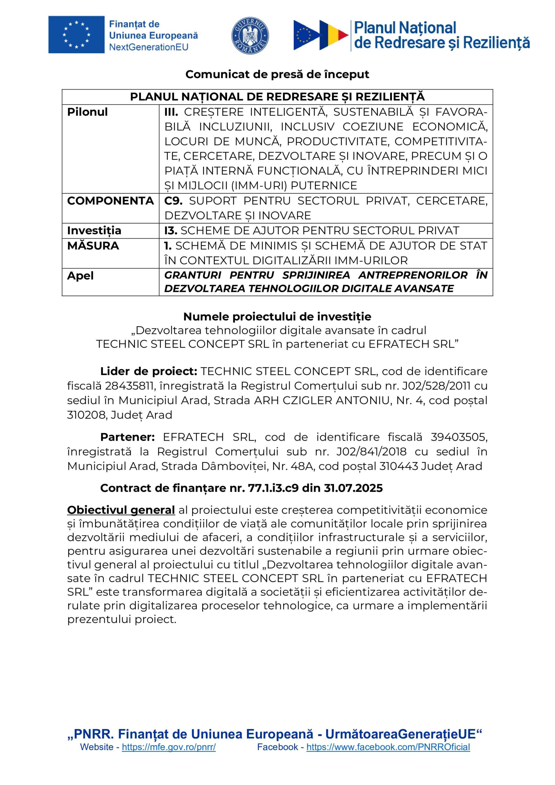 TECHNIC STEEL CONCEPT SRL în parteneriat cu EFRATECH SRL”