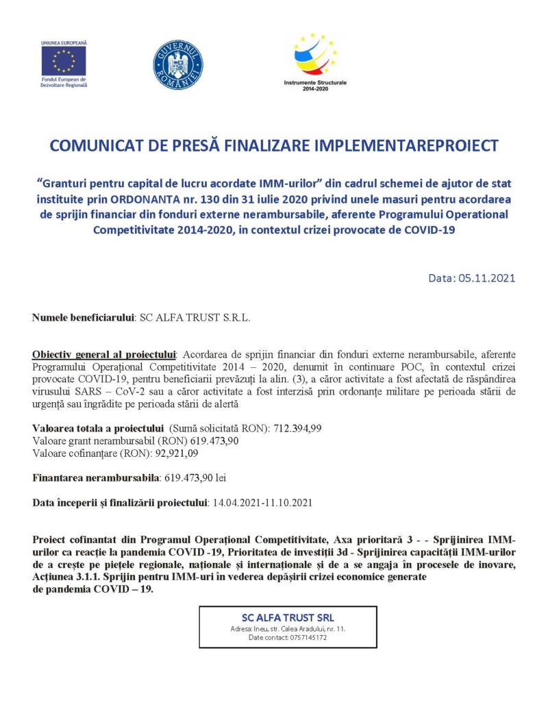 Numele beneficiarului: SC ALFA TRUST S.R.L.