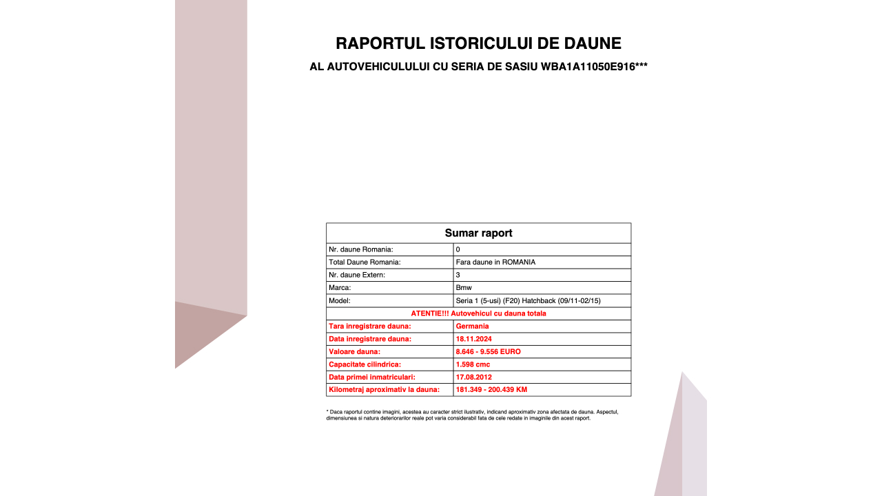 Pentru a evita astfel de probleme, poți folosi un serviciu specializat precum AiDaune.ro. Acesta oferă rapoarte detaliate despre istoricul unei mașini pe baza seriei VIN.