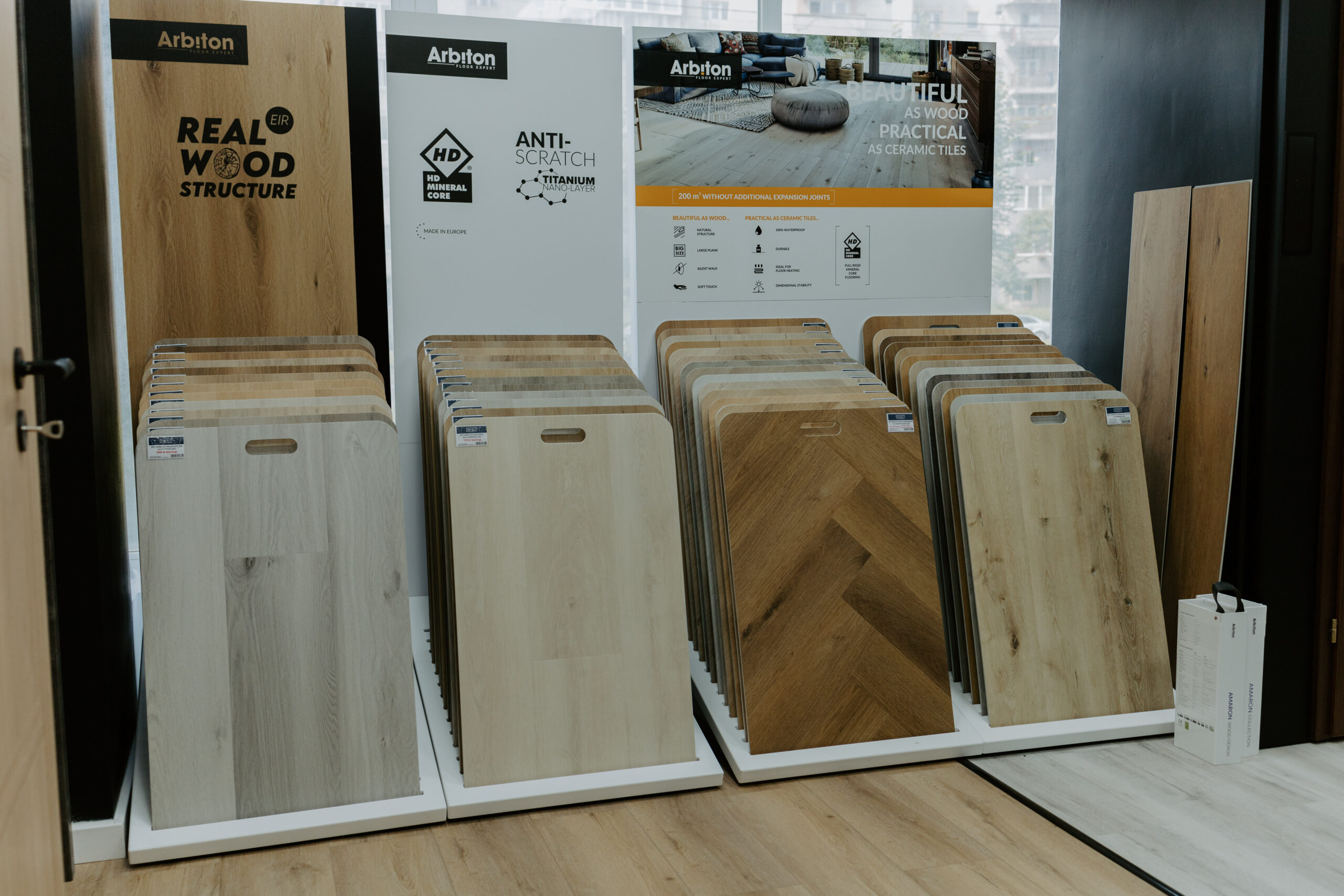 Imaginează-ți că pășești într-un spațiu modern, echipat la cele mai înalte standarde, unde fiecare colț este gândit să inspire și să te ajute să vizualizezi cum va arăta casa ta. Consultantul tău personal te întâmpină, gata să asculte cu atenție și să înțeleagă nevoile specifice ale proiectului tău. Acesta dispune de expertiză și cunoștințele necesare pentru a naviga prin vasta selecție de produse – de la uși interior și exterior marca Porta Doors până la soluții inovative de pardoseli, cum ar fi parchetul laminat sau stratificat și noua generație de pardoseli LVT și SPC.