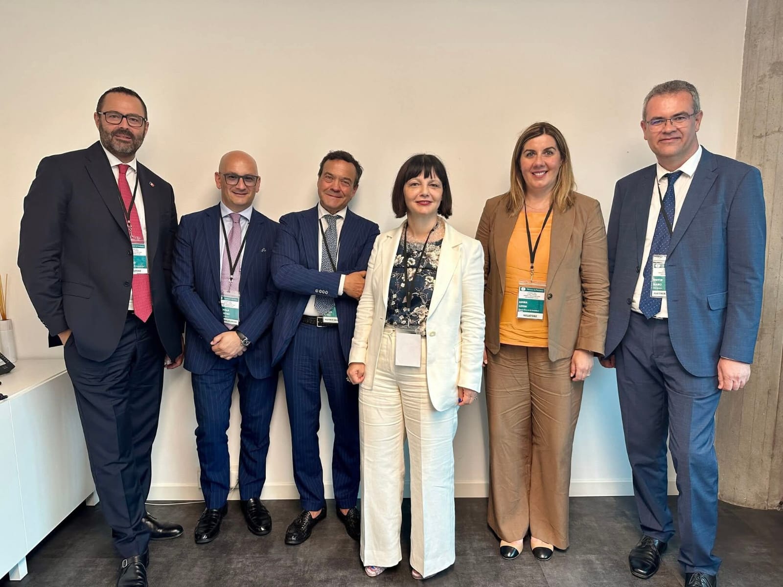 Mirco Maschio, Președintele Grupului Maschio Gaspardo, Pasquale Silvestro, avocat Tonucci & Partners (Trieste/București) și Vicepreședinte CCIpR, Carlo Scarpa, avocat Tonucci & Partners, cu o cunoaștere profundă a realității economice ucrainene, Silvia Sardena, avocat de la Tonucci & Partners (Padova), Adina Lovin, Consul General al României la Trieste, Ervin Bano, avocat la biroul din Tirana, Albania al Tonucci & Partners.