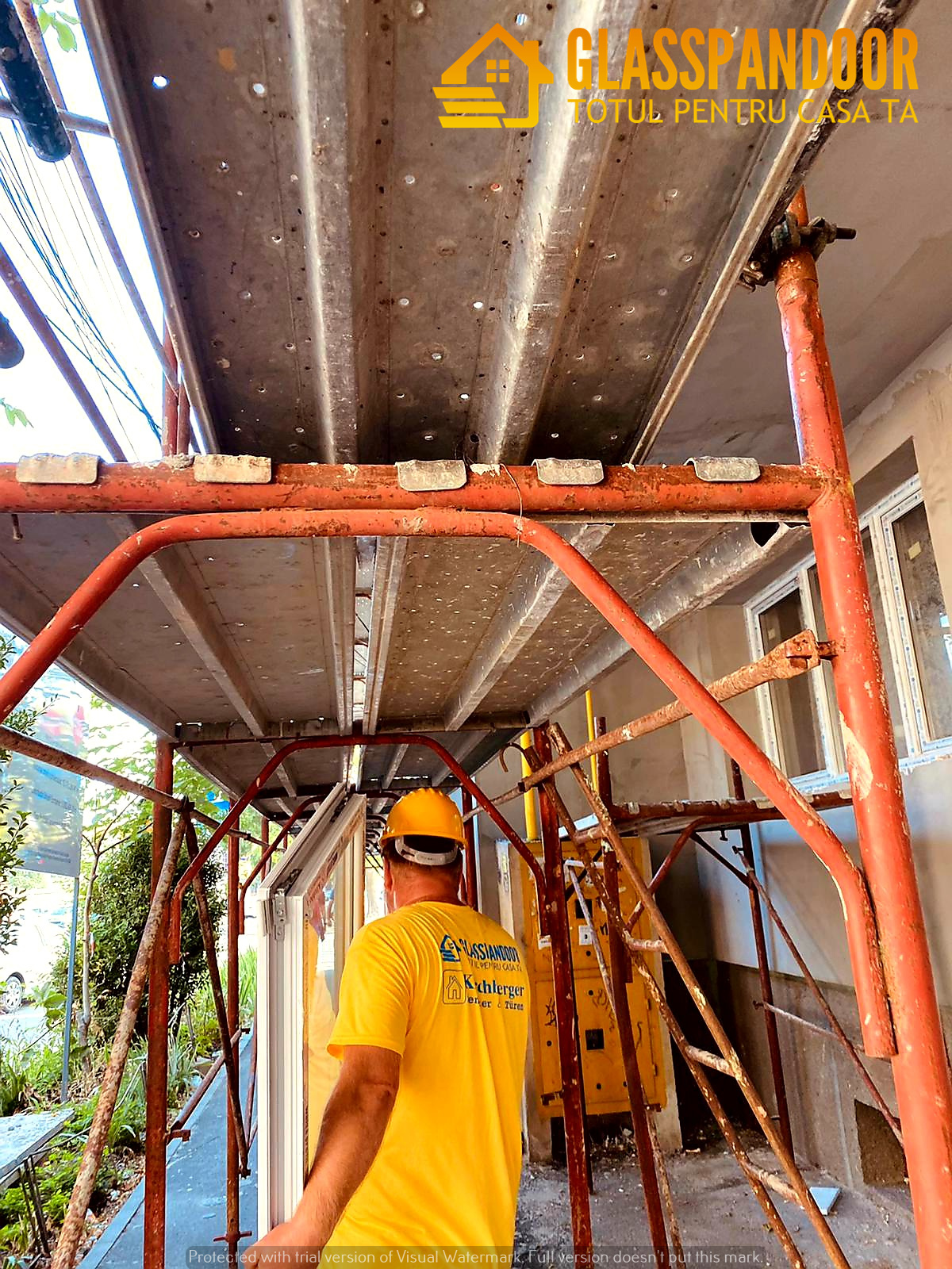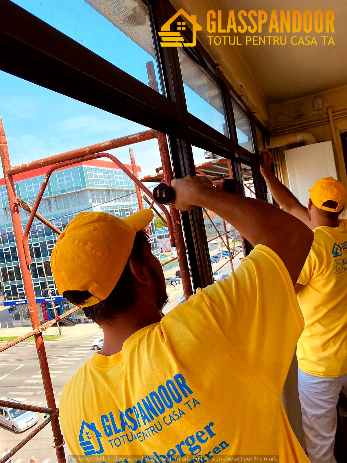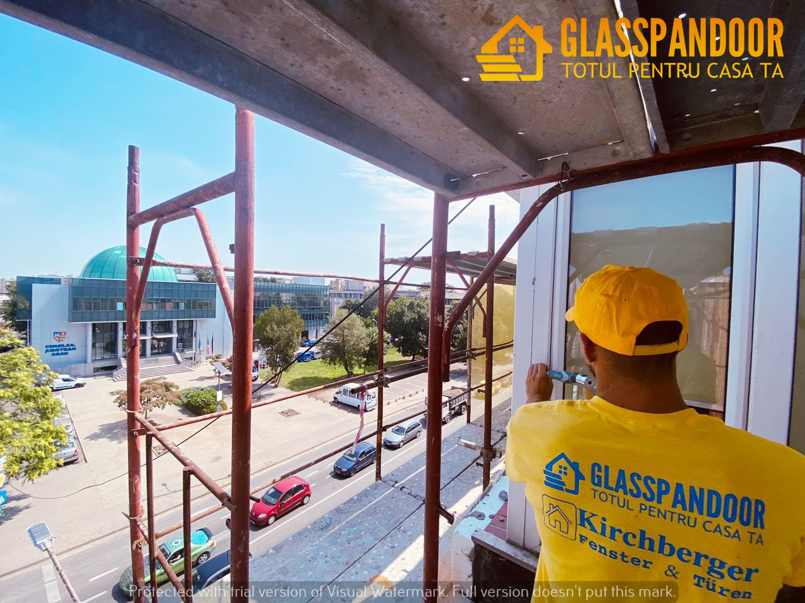 Patru etaje, majoritatea locuintelor cu balcoane situate pe colt, care au necesitat imbinare cu profil rectangular, au fost montate profesionist de angajatii firmei intr-un timp record respectand toate normele de siguranta si igiena.