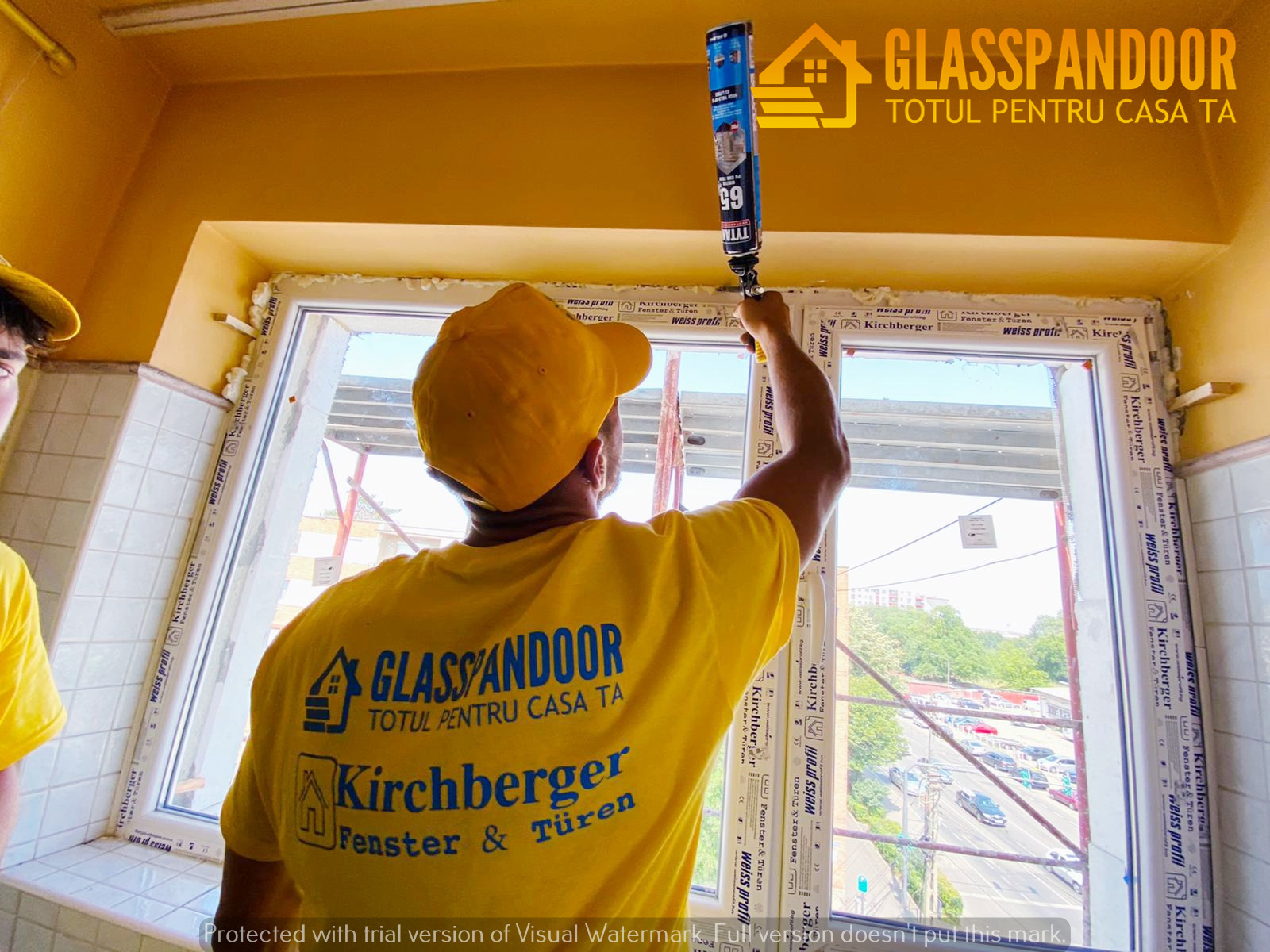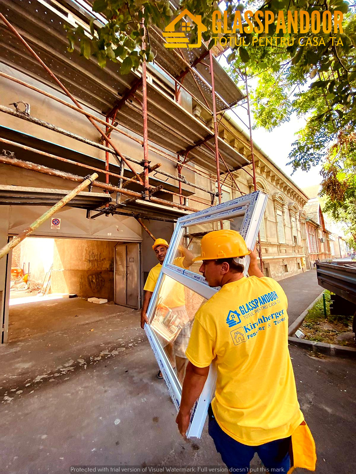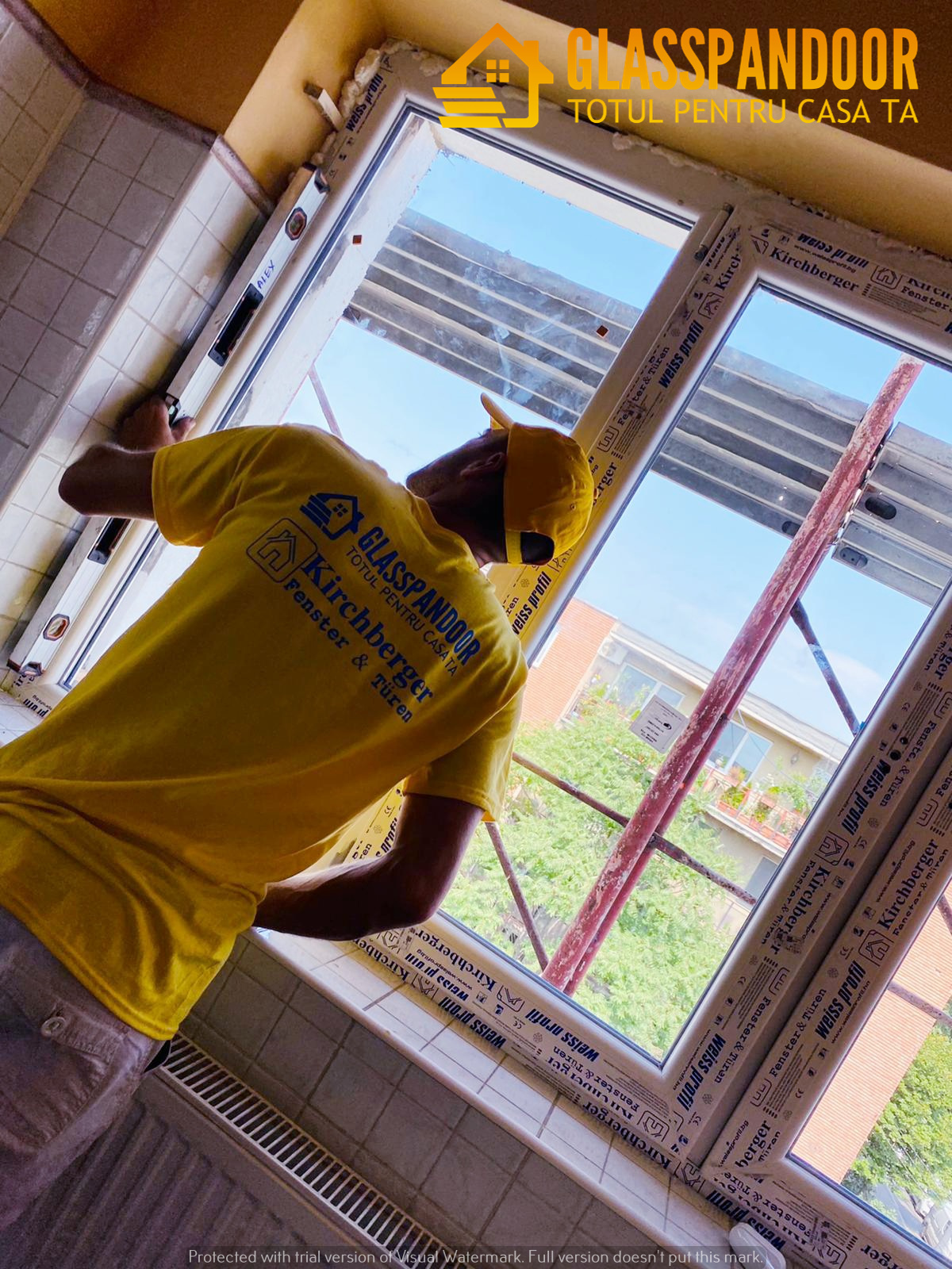 Tamplaria montata este confectionata din profil Pvc marca “Kirchberger”, cu 6 camere bariera termica si 7cm grosime. Sticla Low-E Argon 4/16/4, iar feroneria este de tip Fornex. Armatura este din otel zincat cu grosime de1.5mm.