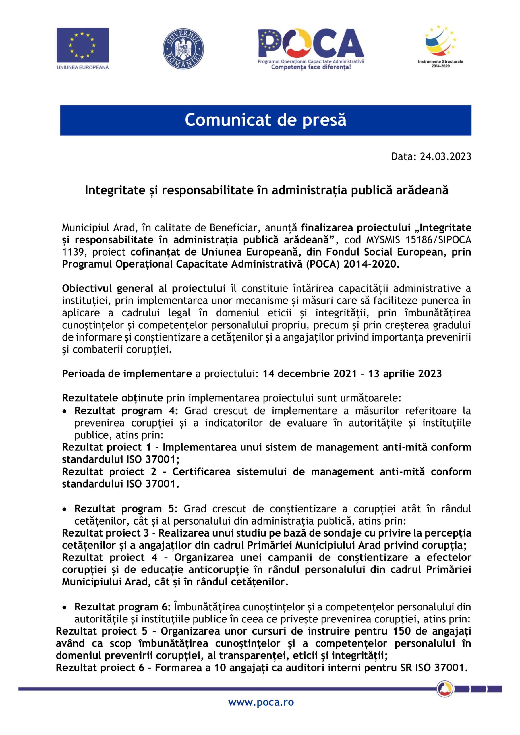 Proiectul „Integritate și responsabilitate în administrația publică arădeană”,