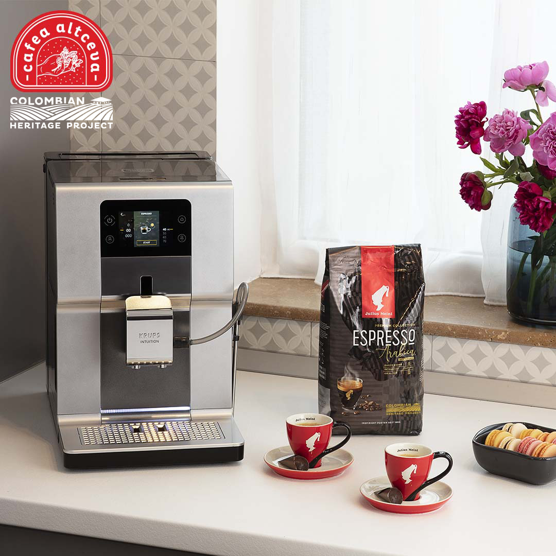 Julius Meinl te invită să descoperi o cafea premium, pe gustul tău, ce poartă gustul autentic columbian. Fie că preferi un espresso dulce și aromat sau un cappuccino cremos, îți vei putea crea momentul tău perfect cu gama Premium Collection: