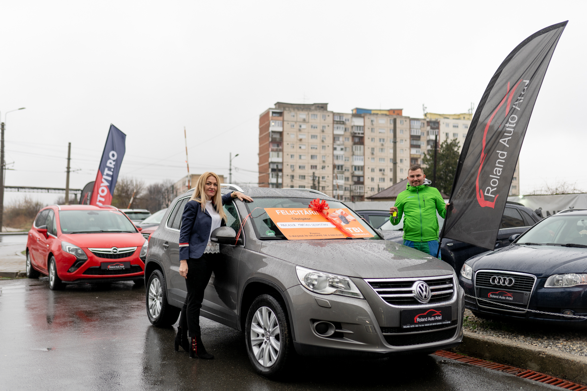 Dar iată că a fost cea mai bună veste de azi. Ce de azi?! De anul ăsta cu siguranță! Era fericitul câștigător al marelui premiu, pus la bătaie de TBI Credit, partener în creditare al Roland Auto Park. 8000 de euro!!! O mașină în valoare de 8000 de euro, pe care trebuia doar să o aleagă și era a lui. Cel mai frumos cadou de Crăciun! A ales un Volkswagen Tiguan, pe care îl va parca alături de mașina deja achiziționată. Premiul i-a fost înmânat de Ingrid Bărbosu – administrator Roland Auto și de către Diana Țîrlui – coordonator zonal TBI Credit.