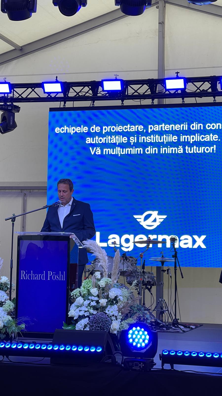 Richard Poeschl – CEO Lagermax, a declarat: „Noul terminal de la Arad se întinde pe 24.000 de metri pătrați de depozite și 1.000 de metri pătrați de birouri moderne. Este împărțit în patru unități flexibile, gândite să răspundă tuturor cerințelor clienților noștri. Suntem mândri că am ridicat această clădire conform celor mai noi standarde internaționale de sustenabilitate și eficiență energetică”. Referitor la baza de la Curtici deținută de concernul austriac, Poeschl a spus: „Curticiul a fost un motor economic și un model de succes regional. Noul hub de la Arad este continuarea firească a acestui drum”, după care a continuat: „Prin această locație, transmitem un mesaj puternic: Lagermax consideră România ca o piață cu adevărat în creștere și o regiune în care dorim să investim și să avem succes împreună. Noul depozit din Arad va juca un rol cheie – ca un centru logistic, cu locuri de muncă atractive și ca partener de încredere pentru clienții noștri”.