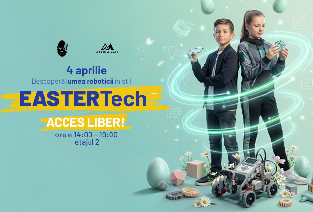 Sâmbătă, pe 4 aprilie, între 14:00 – 19:00, Atrium Mall găzduiește EASTERTech – un eveniment interactiv dedicat micilor pasionați de tehnologie.
