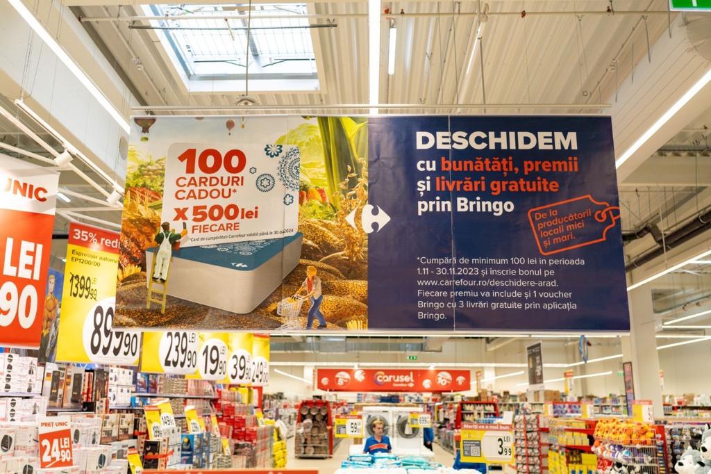 Cu ocazia deschiderii, poți consulta cataloagele cu oferte și promoții speciale și participa la cele două tombole cu premii. În perioada 1 – 30 noiembrie, înregistrează un bon de cumpărături în valoare de minimum 100 de lei pe site-ul https://lp.carrefour.ro/deschidere-arad/ și beneficiezi de șansa de a câștiga unul dintre cele 100 de carduri cadou în valoare de 500 de lei fiecare. Mai mult, în intervalul 18:30-22:00 din ziua deschiderii, poți deveni în doar câteva momente câștigătorul unor premii instant: din 30 în 30 de minute se anunță o casă norocoasă, unde clientul care se află cu produsele la scanat primește un pachet cadou cu o selecție de produse marcă proprie Carrefour.