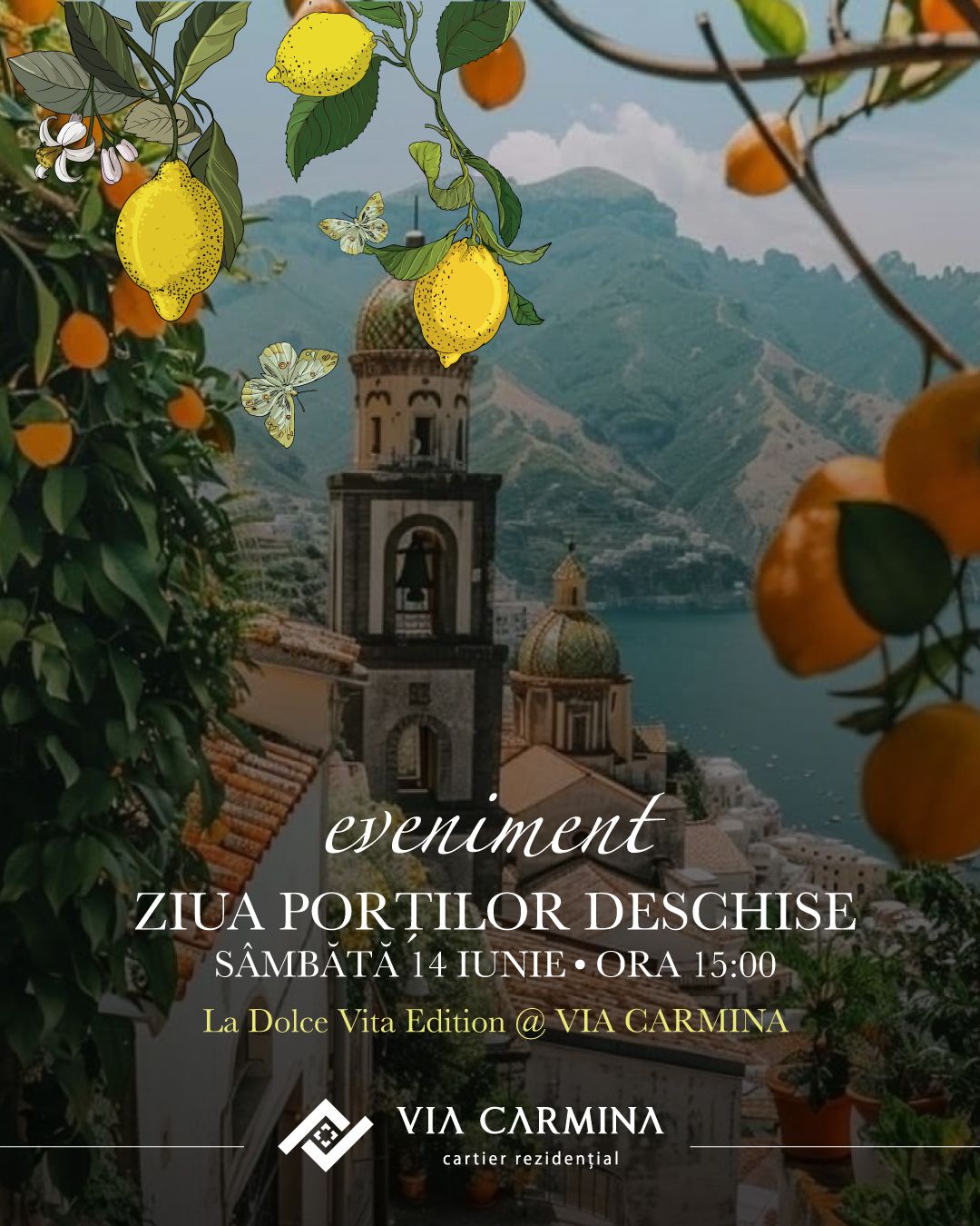 Dacă vrei să simți atmosfera acestui cartier, te invităm sâmbătă, 14 iunie, la evenimentul Open Doors @ ViaCarmina – o zi în care deschidem larg porțile cartierului pentru viitorii rezidenți, prieteni și iubitori de frumos.