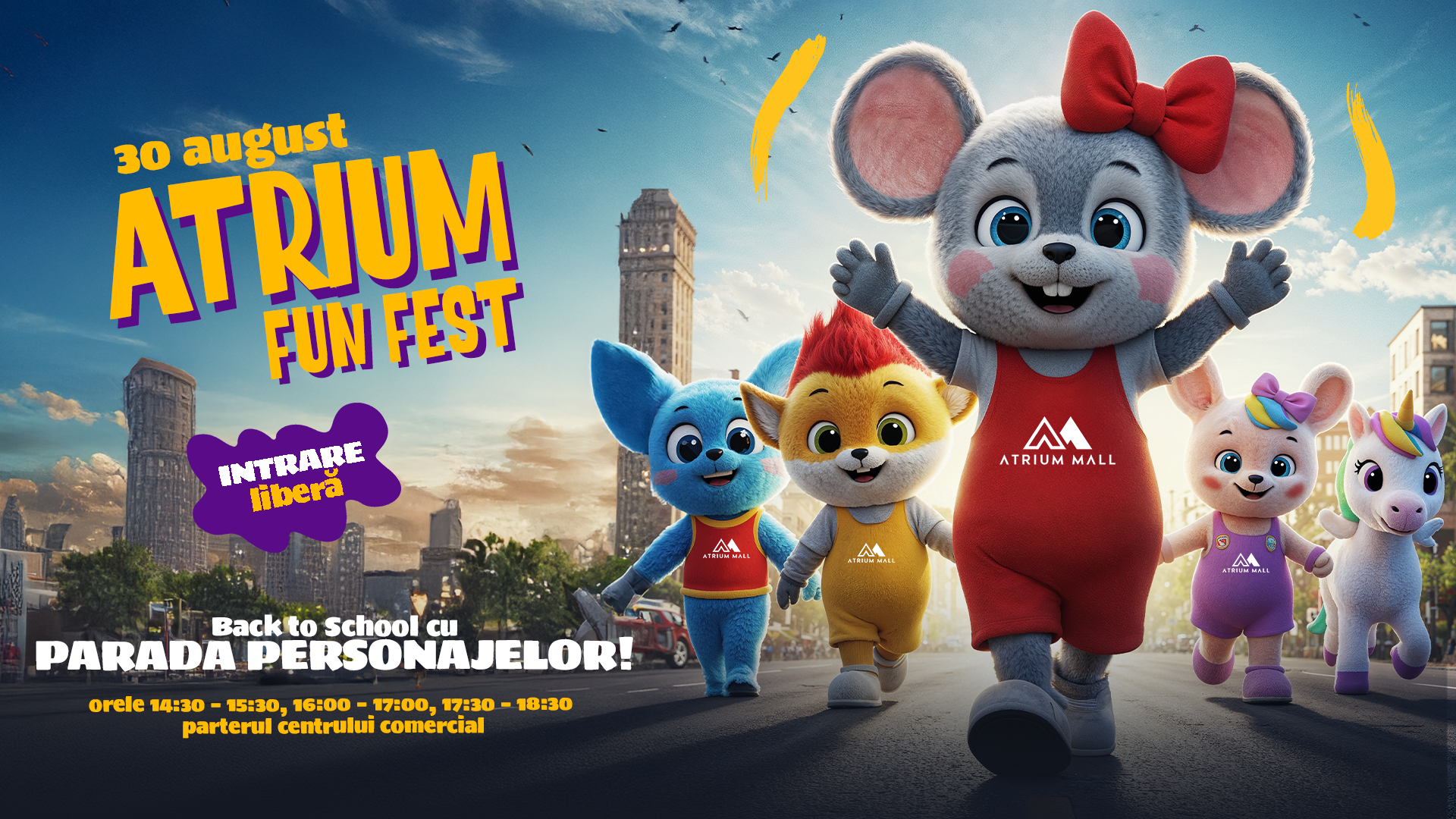 Atrium Fun Fest aduce distracție, voie bună și experiențe memorabile pentru copii, părinți și bunici. Dacă vrei să închei vacanța cu zâmbetul pe buze, vino la Atrium Mall și bucură-te de atmosfera de festival!