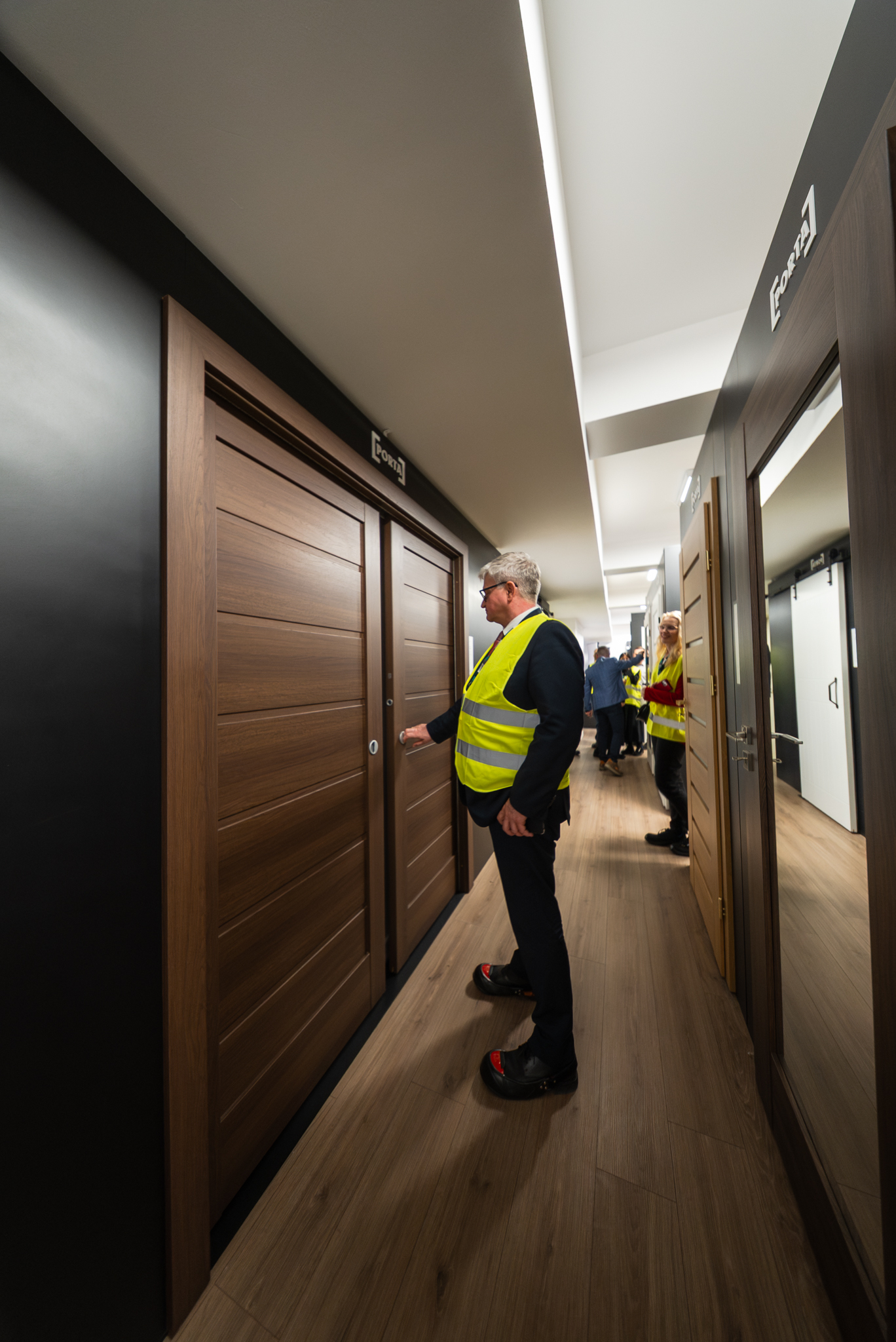 Vizita a inclus un tur detaliat al unității de producție, oferind o imagine completă asupra capacităților industriale și a tehnologiilor moderne utilizate de companie. Oaspeții au avut ocazia să urmărească întregul proces de fabricație al ușilor și tocurilor, de la prelucrarea materiilor prime până la produsul final – evidențiind nivelul ridicat de eficiență și standardele stricte de calitate implementate la Arad.