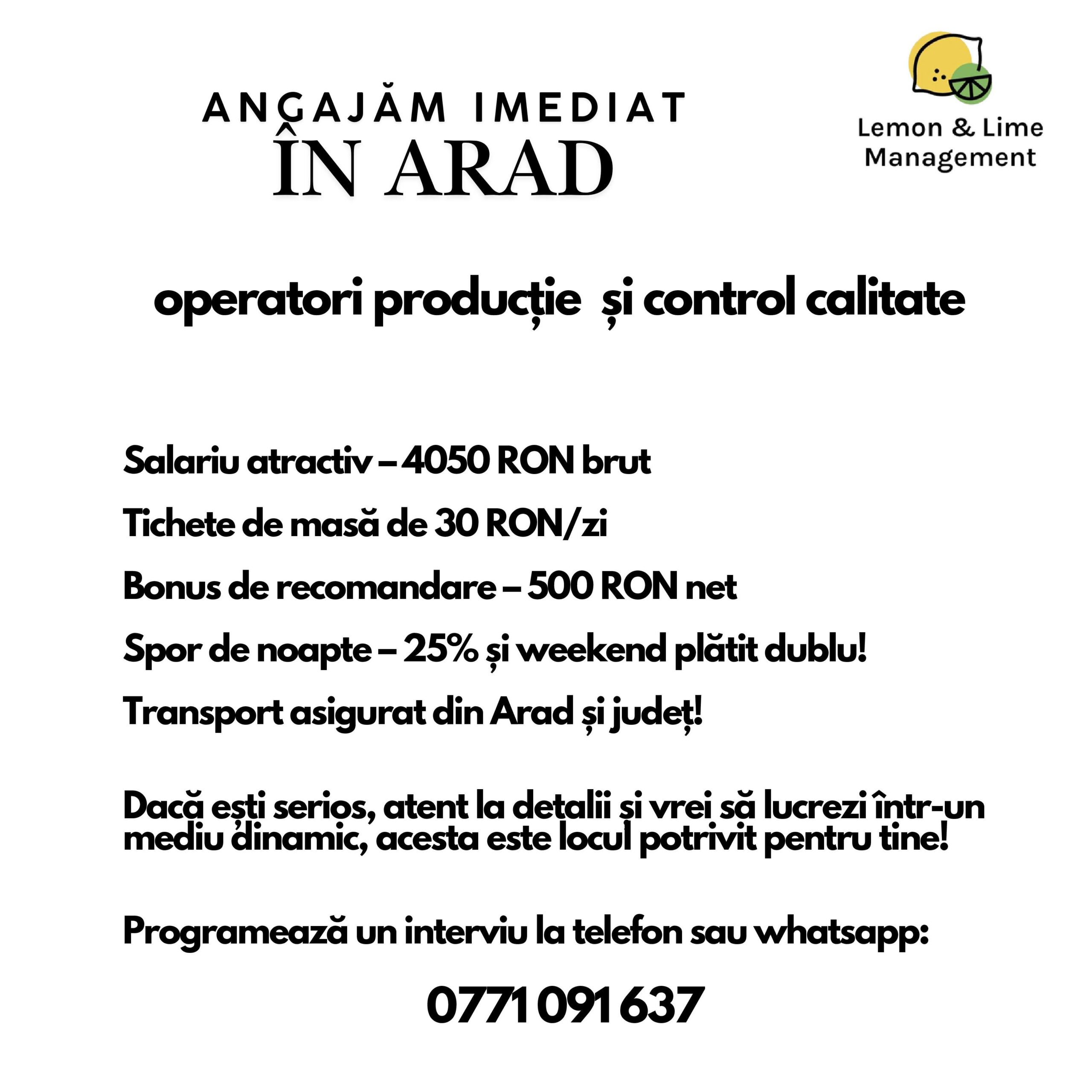 Spor de noapte – 25% și weekend plătit dublu! Transport asigurat din Arad și județ!