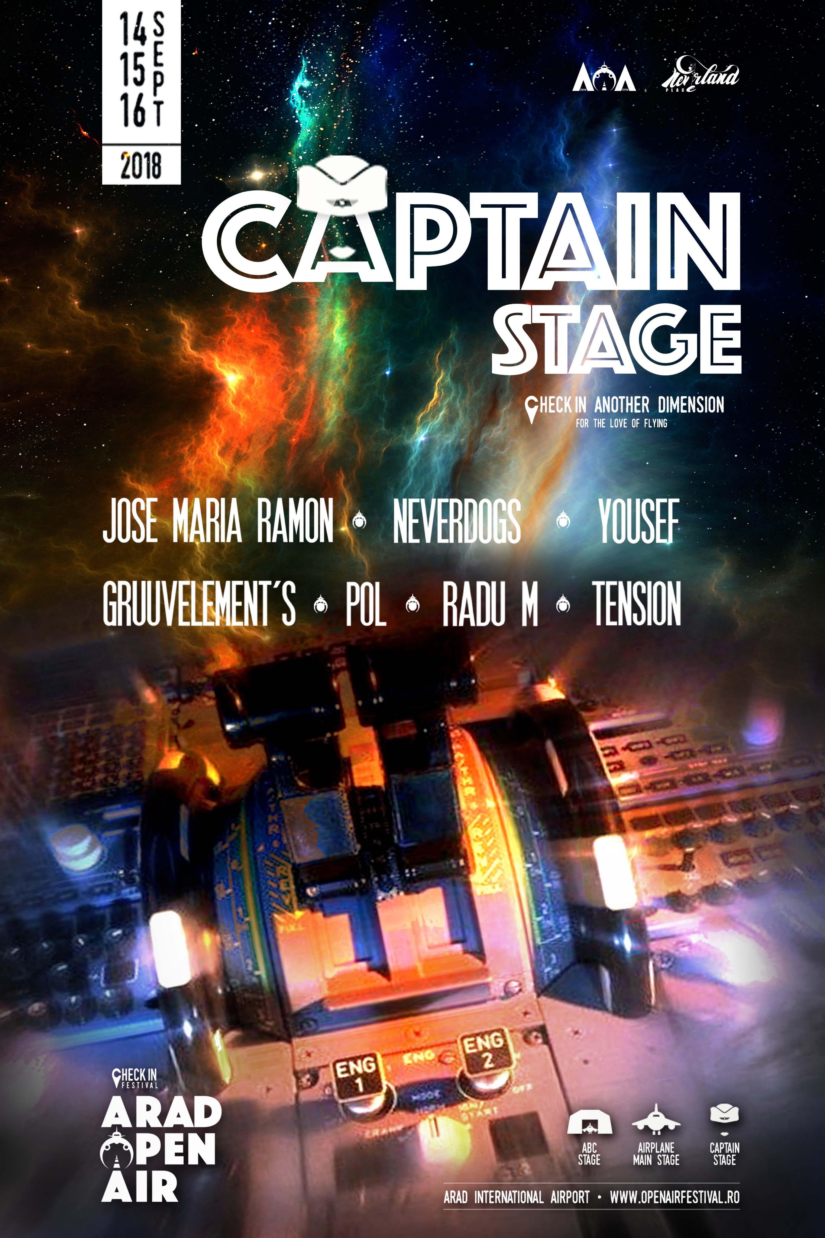 Prima ediție a evenimentului Arad Open Air Festival, desfășurat în perioada 14 - 16 septembrie 2018, aduce fanilor muzicii electronice cele mai bune motive pentru a-și da checkin pentru dis-tracție. Printre cei care vor conduce Captain Stage se numără: Yousef, Neverdogs, Jose Maria Ramon, Gruuvelement s, Radu M., PoL și Tension.