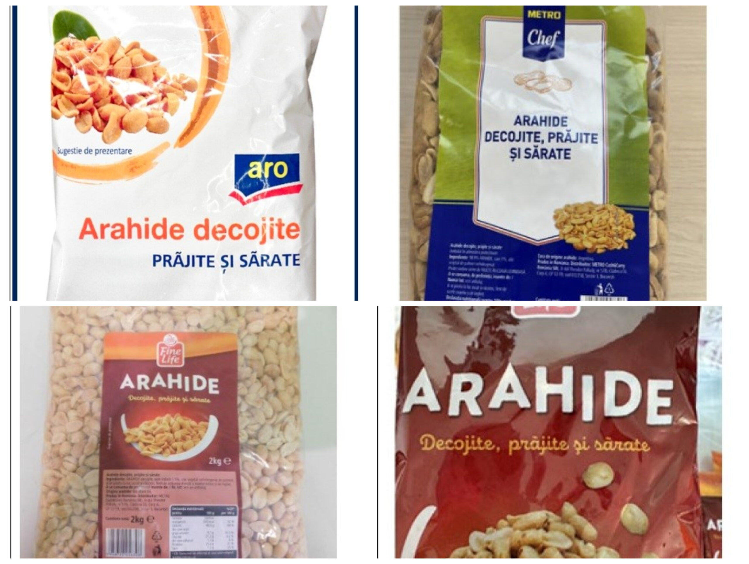 Mai multe tipuri de arahide prăjite au fost retrase de către lanțul Metro după detectarea prezenței de aflatoxine peste limite.