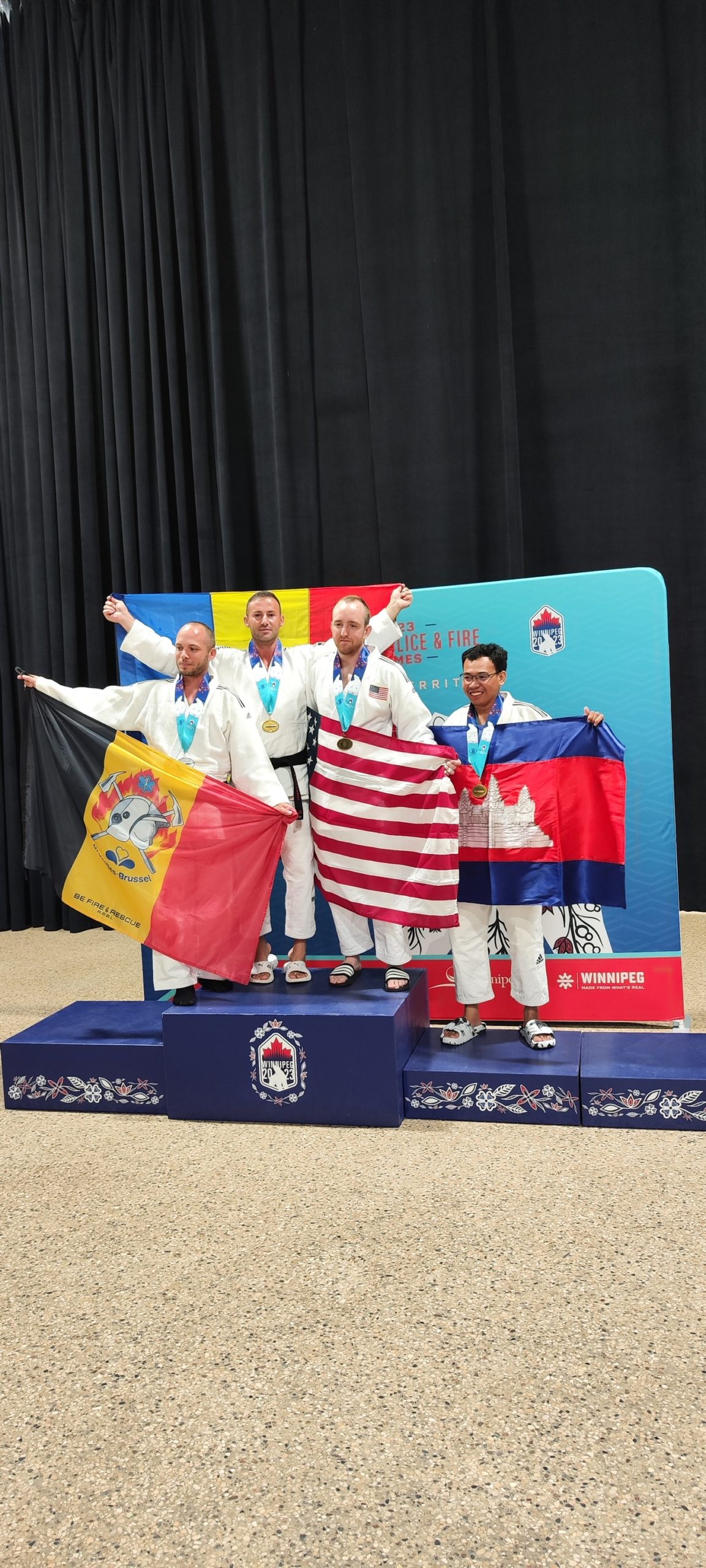 WINNIPEG. Performanță de excepție pentru Daniel Lazăr, polițistul arădean care face cinste uniformei pe care o poartă. În perioada 28 iulie – 6 august, la Winnipeg, în Canada, a avut loc World Police & Fire Games. Și – ca în fiecare an – Daniel Lazăr a scris istorie. A participat la concursul de judo, categoria 73 de kilograme, cucerind medalia de aur, la categoria de vârstă +30 de ani. A fost singurul român din acest concurs care a urcat pe cea mai înaltă treaptă a podiumului de premiere.
