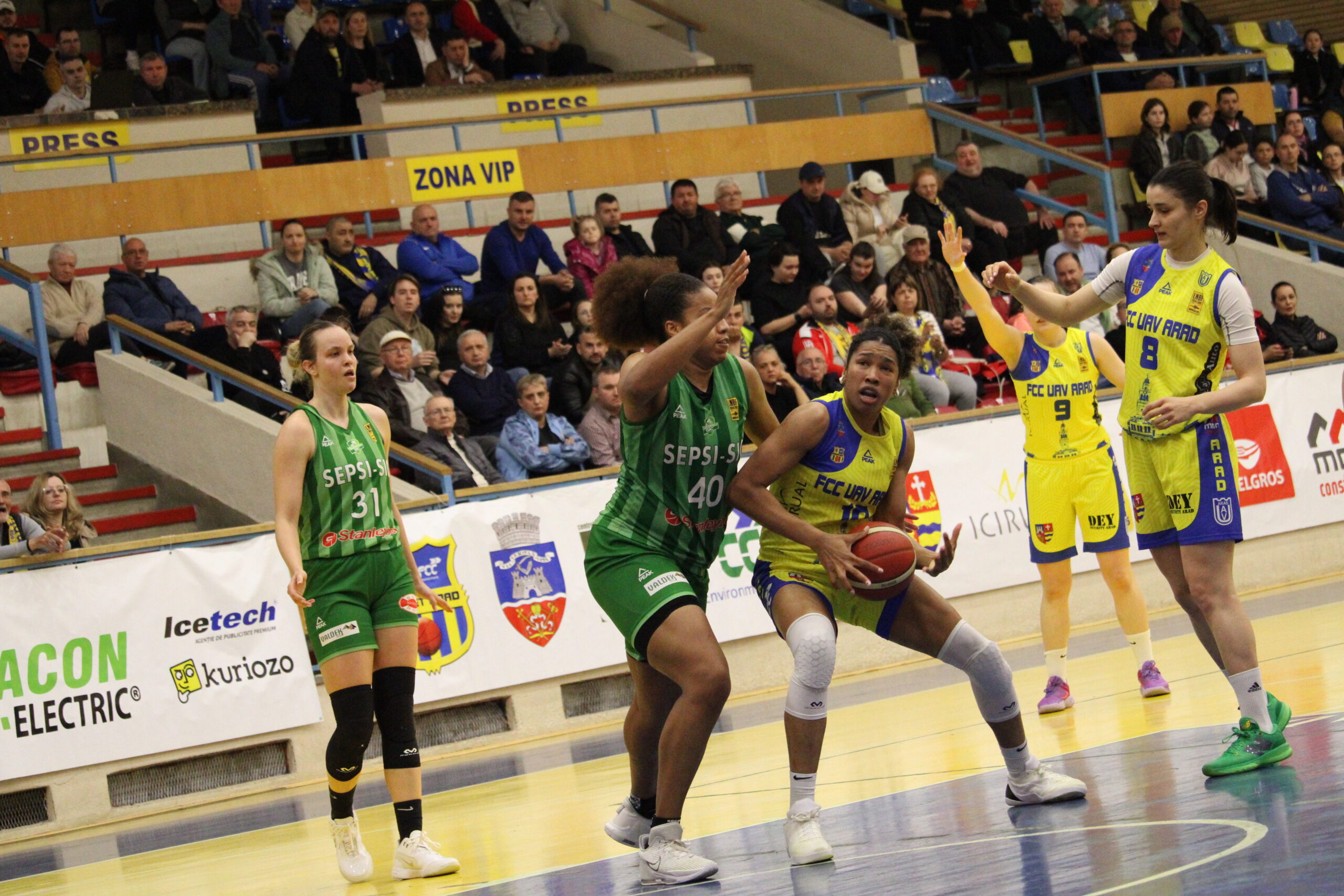 Arădencele au avut momente bune în sfertul trei, când s-au dus din nou la peste zece puncte în față, dar Sepsi a mai redus ecartul și la ultima pauză tabela arăta 60-55. Purtate de la spate de un public entuziast, „galben-albastrele” s-au dublat bine în apărare, au reușit să marcheze și de la distanță în momentele cheie, rupând definitiv achilibrul cu un run de 11 puncte. Cea mai mare diferență a fost de 19 puncte, iar meciul s-a încheiat cu 84-71 pentru FCC UAV Arad. Prima victorie stagională cu Sepsi, la a patra confruntare directă, duce semifinala în jocul decisiv.