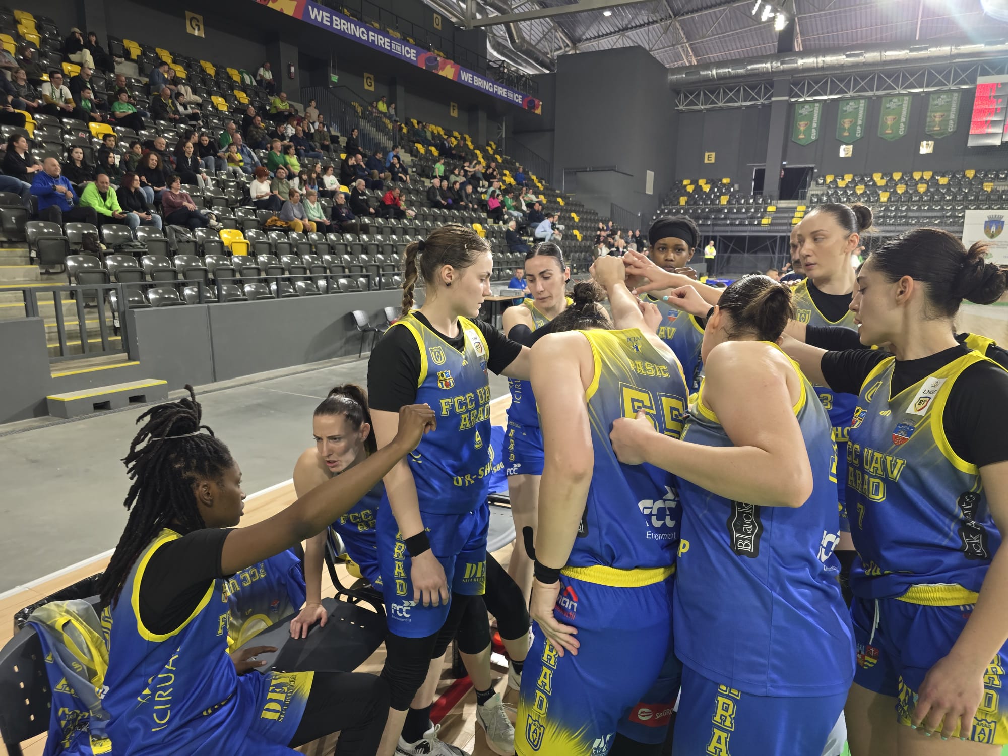 FCC UAV s-a apropiat la trei puncte în debutul sfertului patru, dar au urmat alte ratări care le-au permis gazdelor să se distanțeze din nou la zece lungimi. Impulsionate de antrenoare, arădencele au continuat să lupte, apărarea a funcționat mult mai bine și au redus treptat din ecart, forțându-și adversarele la epuizarea timpului de atac în câteva rânduri. Davis a marcat ultimele puncte ale gazdelor cu puțin sub un minut și jumătate până la final, ducând scorul la 73-67.