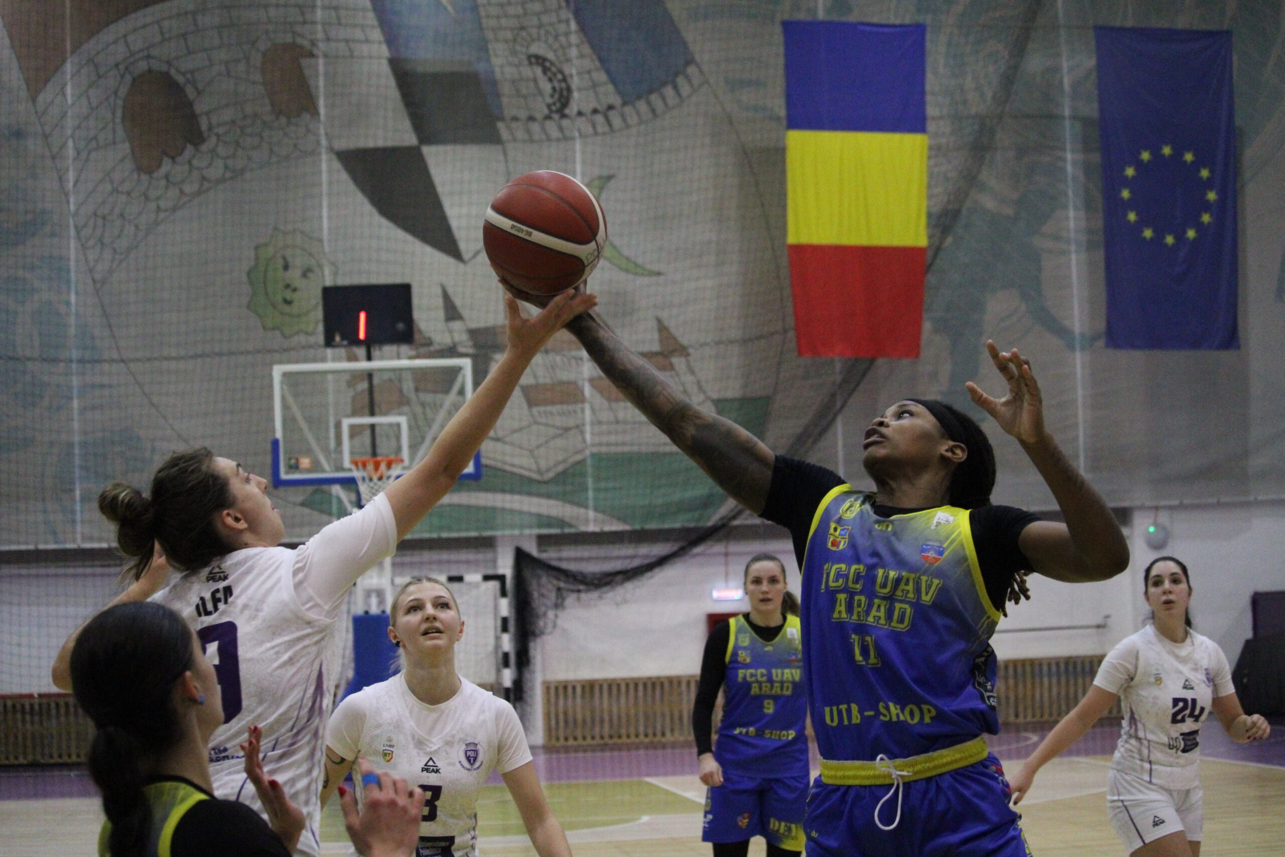 TIMIȘOARA. FCC Baschet UAV Arad a câștigat cu 84-40 pe terenul lui CSU Politehnica Timișoara, pe sferturi: 28-6 19-16, 17-8, 20-10. A fost un joc controlat în totalitate de elevele Tatianei Gallova, care au exersat în mai multe rânduri apărarea agresivă pe tot terenul contra unor adversare tinere.