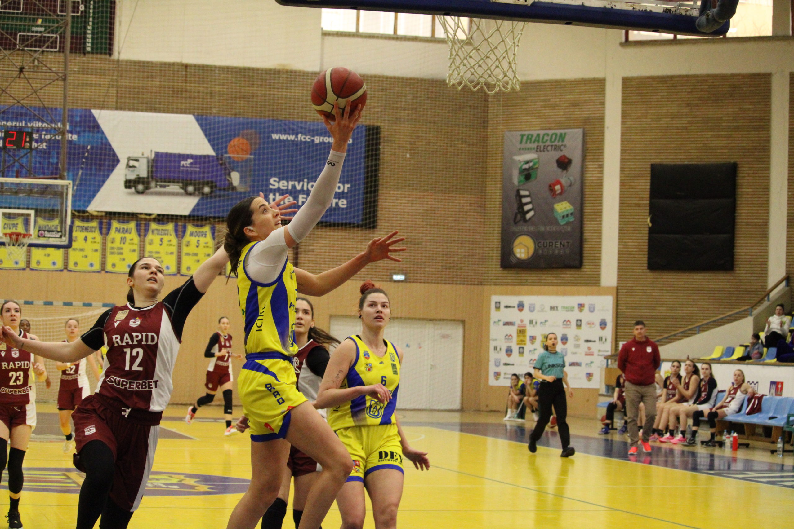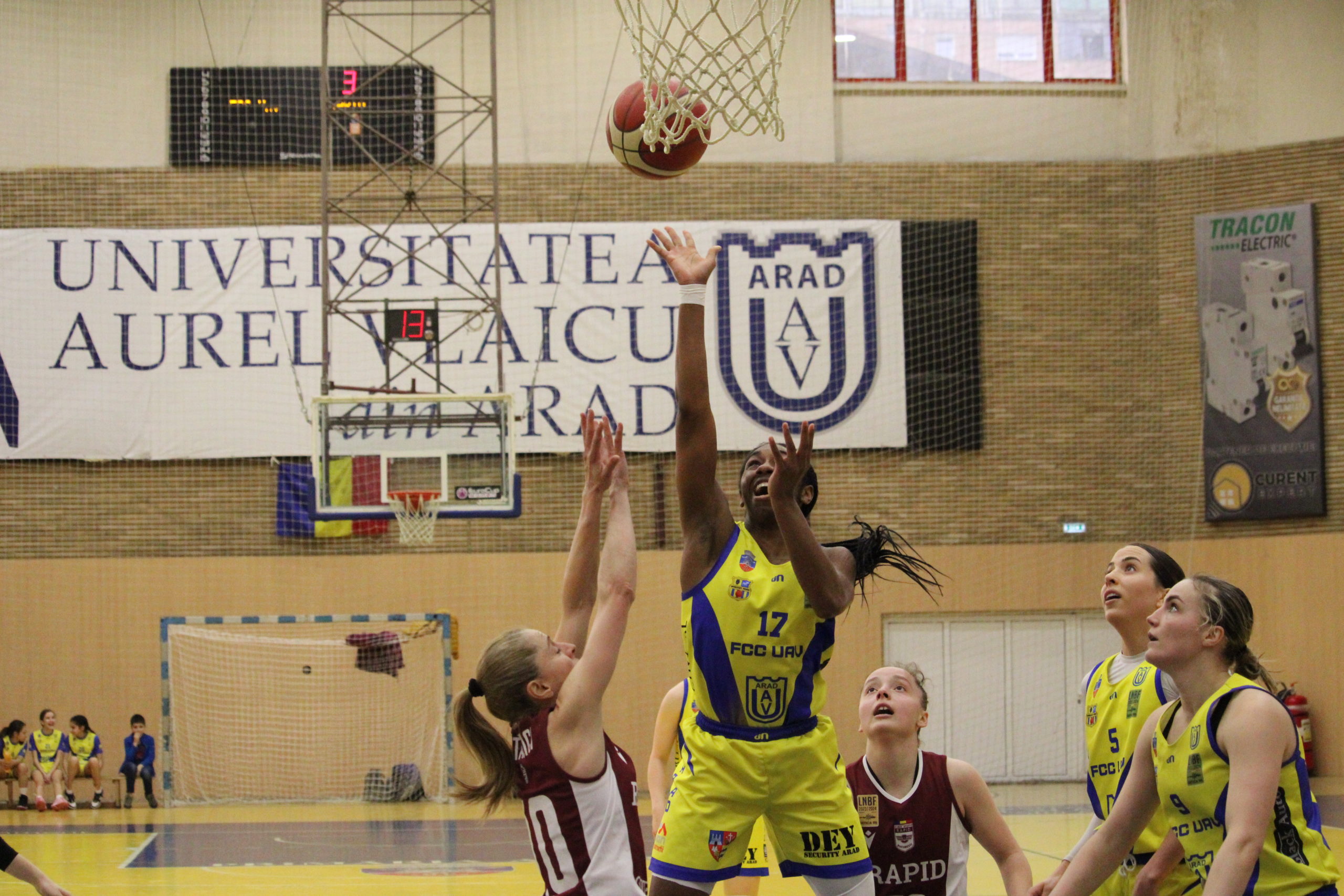 FCC Baschet UAV Arad s-a impus cu 76-54 (pe sferturi: 26-11, 11-13, 19-14, 20-16) acasă cu Rapid București în meciul care a deschis seria din primul tur de play-off al Ligii Naționale de Baschet Feminin. „Galben-albastrele n-au avut emoții, au ajuns la un avans maxim de 25 de puncte și au rulat tot lotul, respectându-și statutul de favorite în duelul dintre locurile 3 și 6 în sezonul regulat.