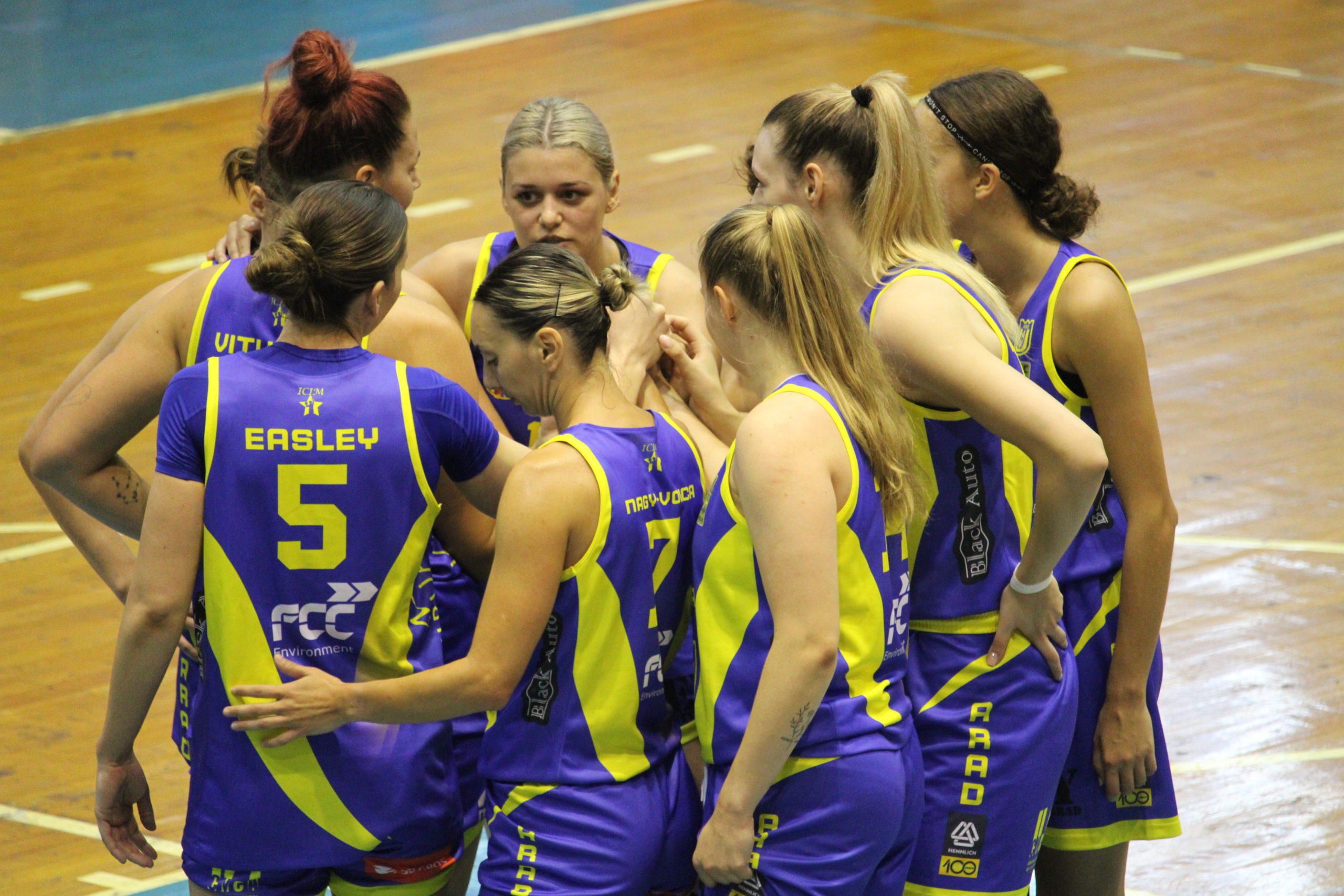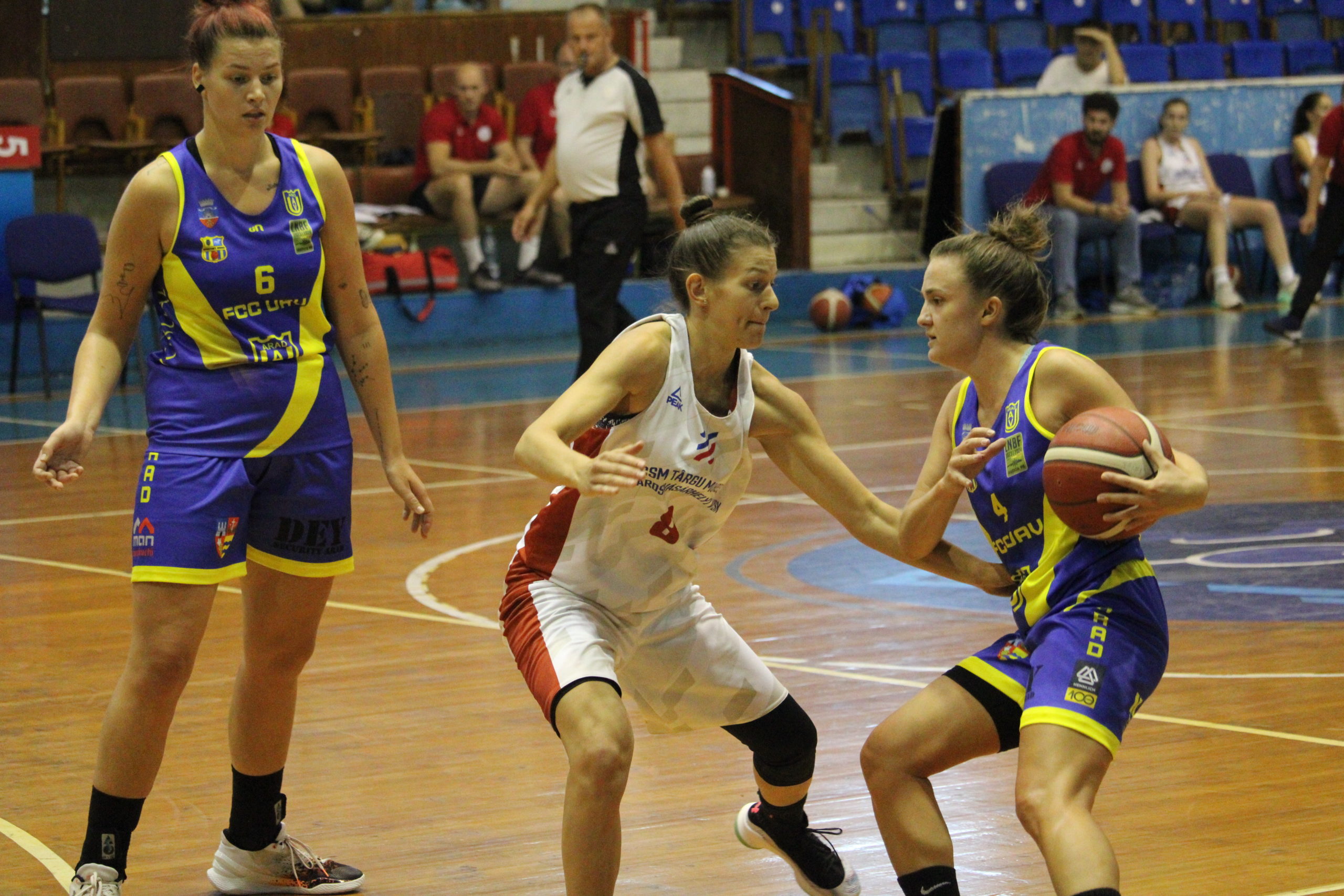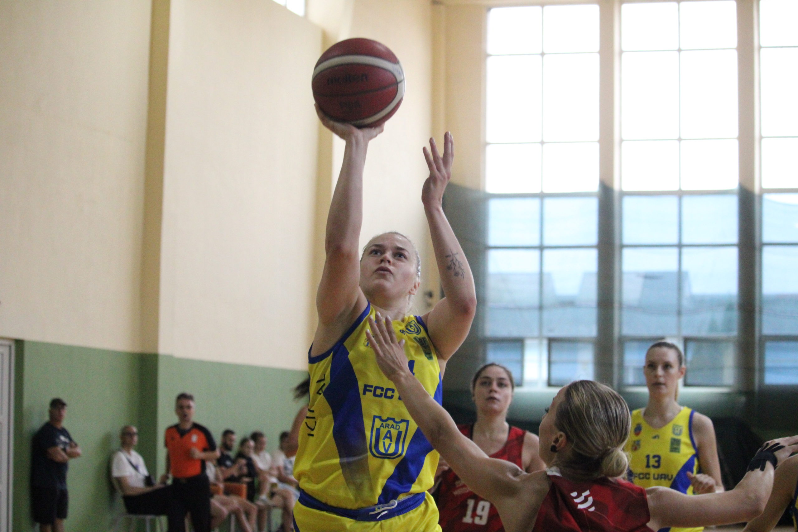 Arădencele au început tare primul amical, jucat într-o sală mică, și s-au desprins încă din primele momente. S-au impus cu 86-35, pe sferturi: 22-8, 21-8, 22-12, 21-7. A fost un joc bun pentru exersarea schemelor, iar apărarea arădeană a funcționat bine. Marcatoarele FCC UAV: Easley 16 puncte, Biszak 14, Vitulova 14, Voica-Nagy 10, Ciotir 10, Ghiță 10, Cucu 7, Mititelu 3 şi Fleșer 2.