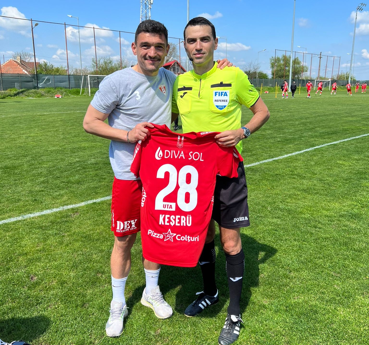 Claudiu Keseru i-a oferit, cu acest prilej, un tricou cu numărul 28 pe care acesta îl îmbracă la UTA.