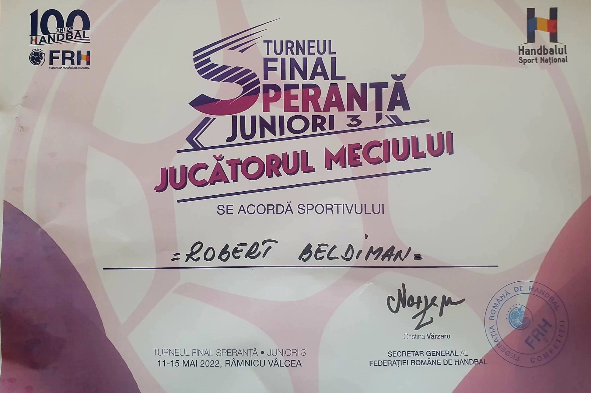 Micuţii handbalişti arădeni pregătiţi de soţii Adriana şi George Beldiman s-au clasat în final pe locul 4, iar Robert Beldiman a fost desemnat în două dintre partide „Jucătorul meciului”.