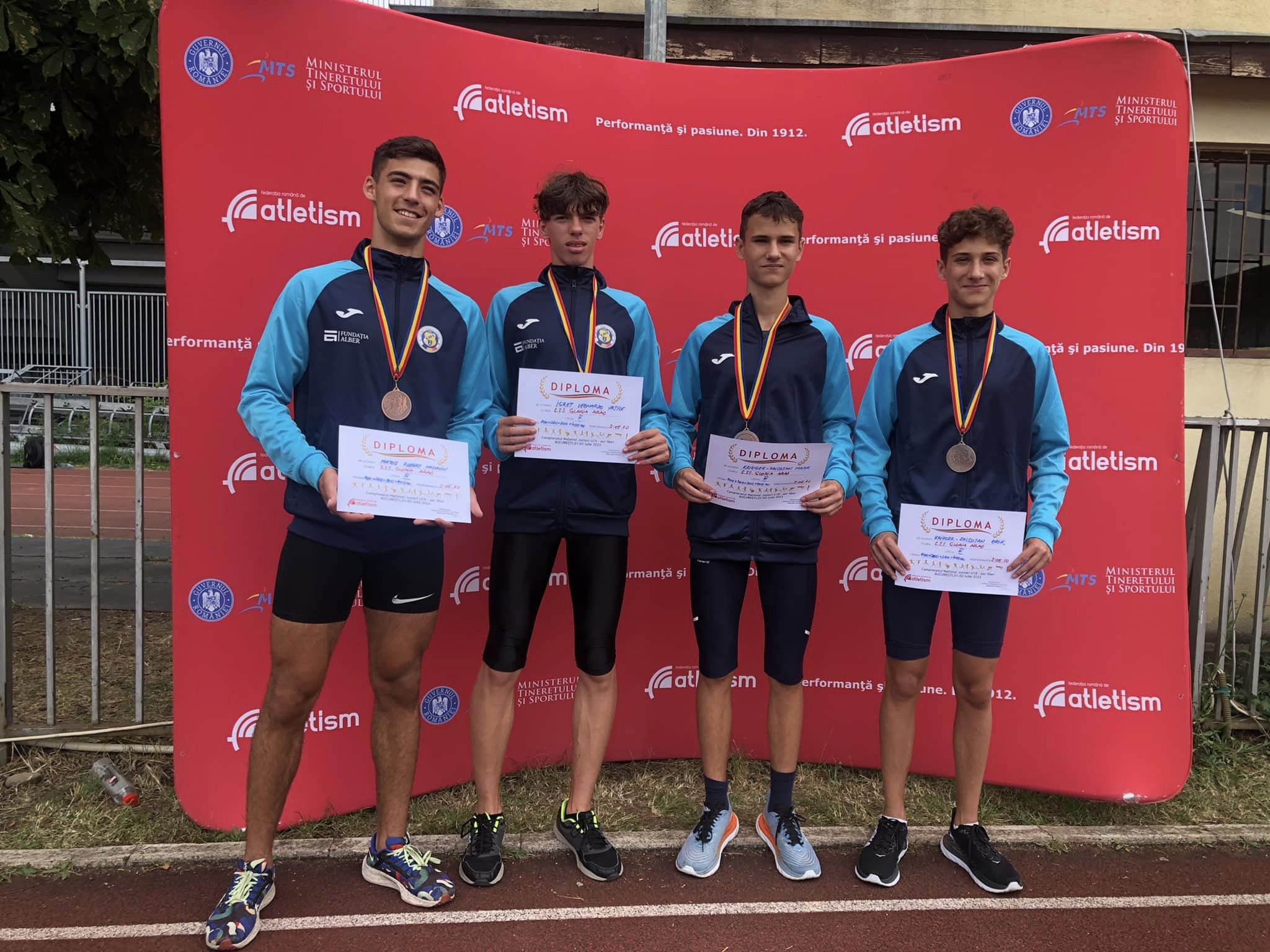 CSȘ Gloria Arad a luat bronzul cu ștafeta de 100m+200m+300m+400m, în componența Robert Matus (CSS Gloria Arad – CS Universitatea Arad), Mark Krieger, Leonardo Igreț și Erik Krieger cu 2:05.10, după LPS P.T. Craiova (2:03.59) și LPS Banatul TM (2:04.29).