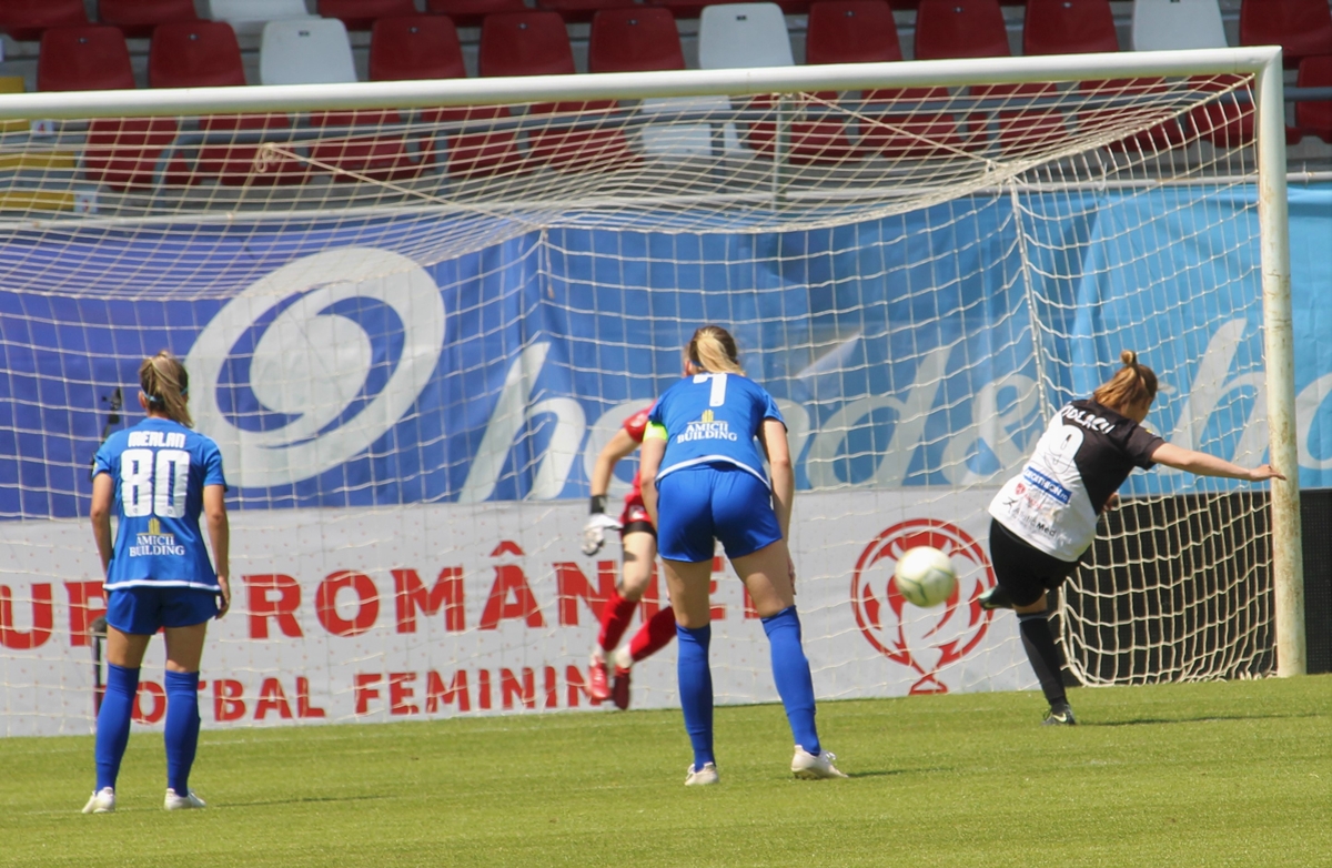 ARAD. Universitatea Olimpia Cluj a reușit eventul după ce a câștigat Cupa României de fotbal feminin pe stadionul „Francisc Neuman”, în primul meci jucat cu spectatori pe noua arenă arădeană. Campioana României s-a impus cu 1-0 după prelungiri, grație golului marcat de Mihaela Ciolacu din penalty, în minutul 114.