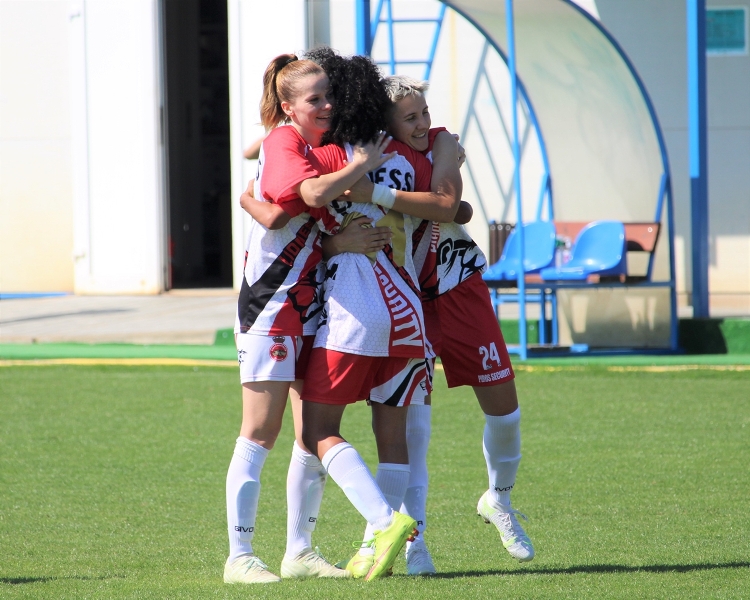 Salva a deschis scorul în minutul 28, dintr-o lovitură liberă de la marginea careului, ușor în dreapta. A trimis mingea în plasă cu un șut la colțul scurt, debutând cu gol pentru „leoaice”. Kugler a avut o nouă ocazie, dar șutul său din careu a fost blocat din nou de Haim. La poarta cealaltă, Maha a avut o primă intervenție în minutul 40. „Alb-roșiile” au avut câteva minute în care n-au mai reușit același presing și au făcut câteva greșeli la construcție, astfel că adversarele au pus ceva probleme. Finalul reprizei le-a aparținut elevelor lui Dan Cuedan. Olariu a avut o ocazie bună, dar a șutat pe lângă. Bozian a stabilit scorul pauzei cu o execuție frumoasă, trimițând mingea în vinclu la colțul lung, din afara careului.