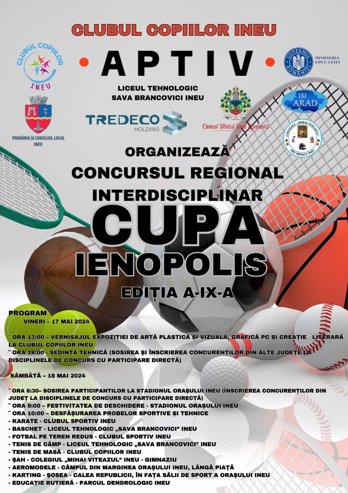 „Îi așteptăm cu drag pe elevi să participe la o nouă ediție a competiției noastre care propune 12 discipline de concurs: baschet, fotbal, tenis de câmp, tenis de masă, șah, karate, aeromodele, karting, educație rutieră, artă plastică și vizuală, creație literară și informatică. Ediția din acest an vrem să fie una deosebită, iar acest lucru lucru va fi posibil cu ajutorul sponsorilor și partenerilor noștri: Aptiv – sponsor principal -, Primăria Orașului Ineu, Conacul Sfântul Sava Brancovici și Tredeco Holding, cărora le mulțumim din suflet”, ne-a declarat prof. Teodora Mang, coordonatorul proiectului.