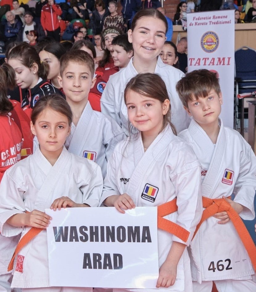 În aceeaşi perioadă, la Galaţi a avut loc Campionatul Naţional de copii, unde cei patru karateka de la Washinoma au fost conduşi de sportiva senioară a clubului Timea Varga. Doi dintre ei s-au întors cu medalii: Amelia Bîrlan – argint la kumite şi bronz la kata şi Cezar Crişan – bronz la kumite. Au mai participat: Anastasia Grigoraş şi Andrei Mijloianu.