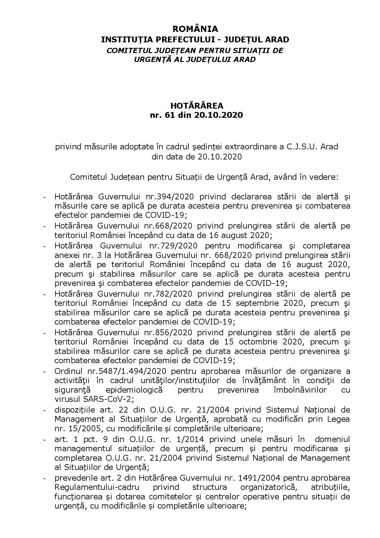 Cursuri online pentru 1.732 de elevi din Arad, în următoarele două săptămâni, conform Inspectoratului Şcolar Judeţean Arad. Instituţia a transmis că Direcţia de Sănătate Publică Arad a transmis rata incidenței cumulative a cazurilor de Covid-19 la o mie de locuitori, pe Unități Administrativ-Teritoriale, pentru data de 19 octombrie. „În funcție de acest indice au fost stabilite scenariile de funcționare ale unităților de învățământ din municipiul și județul Arad”, transmit reprezentanții IȘJ. Astfel, 186 de unități școlare vor funcționa după scenariul verde, 226 vor funcționa după scenariul galben, iar 35 de unități de învățământ vor funcționa după scenariul roșu.