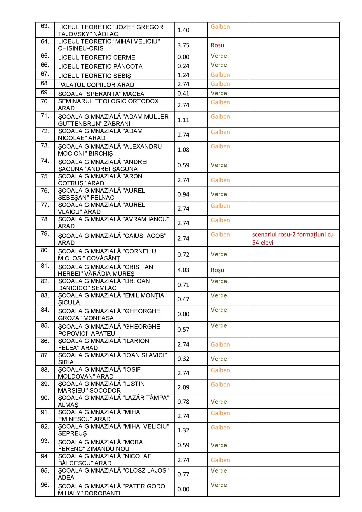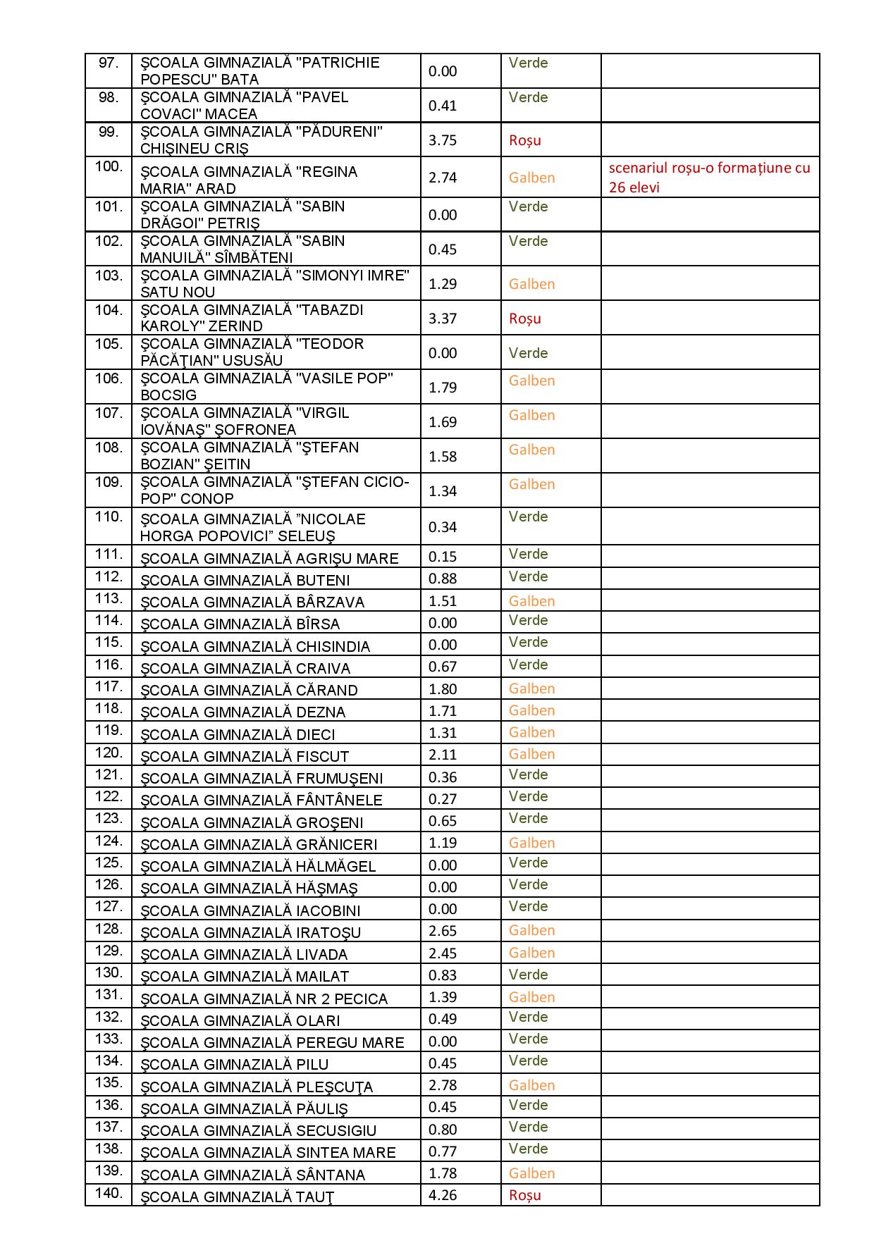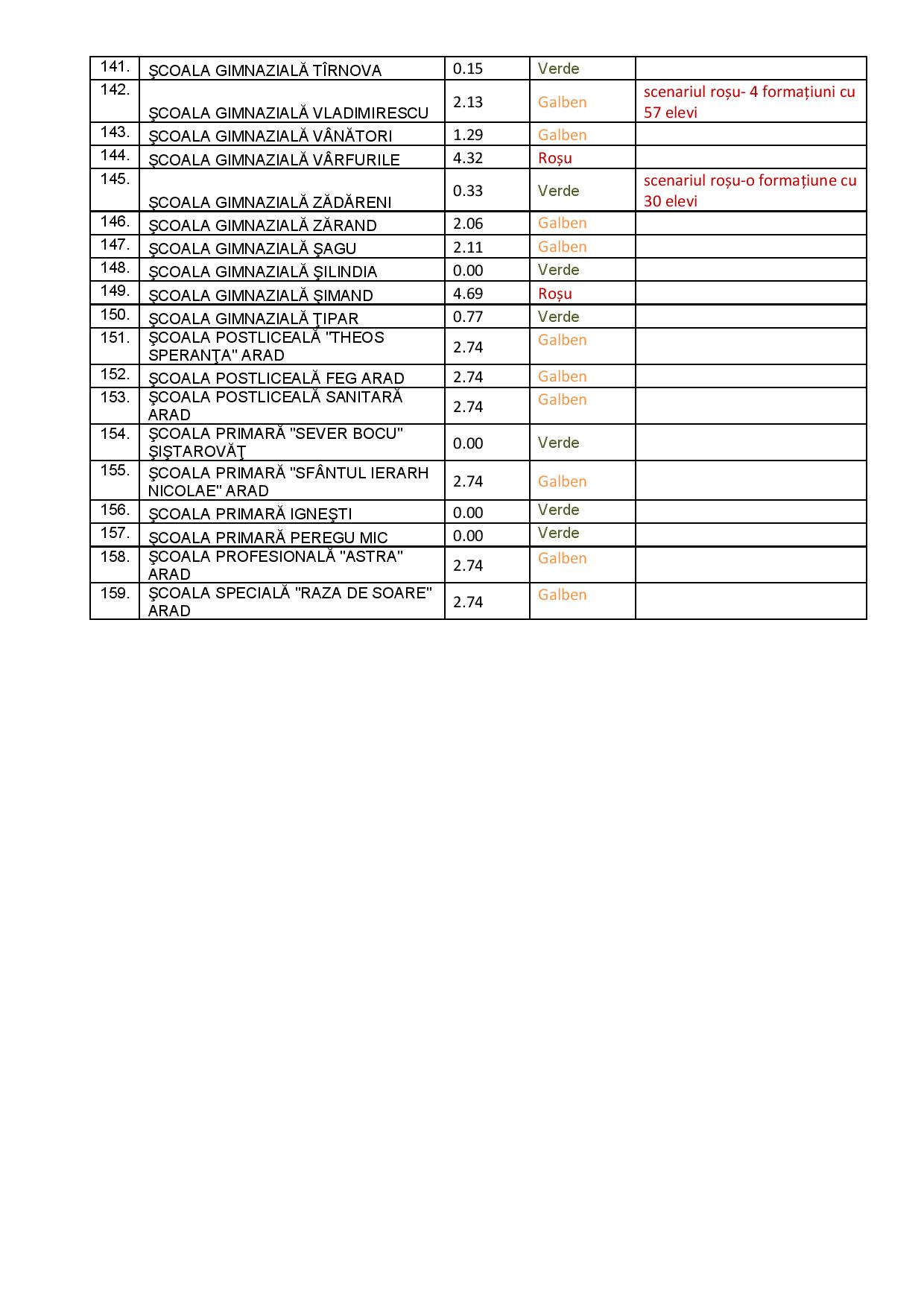 IȘJ-ul menționează și că din cauza apariției unor cazuri de Covid-19 în rândul elevilor sau al cadrelor didactice, 67 de formațiuni de studiu – grupe sau clase – vor funcționa conform scenariului roșu. Cele 67 de grupe sau clase cuprind laolaltă 1.732 de elevi. IȘJ-ul, însă, nu a menționat și școlile în care sunt cele 67 de grupe sau clase.